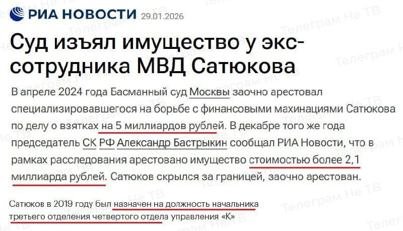 "Суд изъял имущество на 2 млрд.рублей у экс-сотрудника МВД Сатюкова"