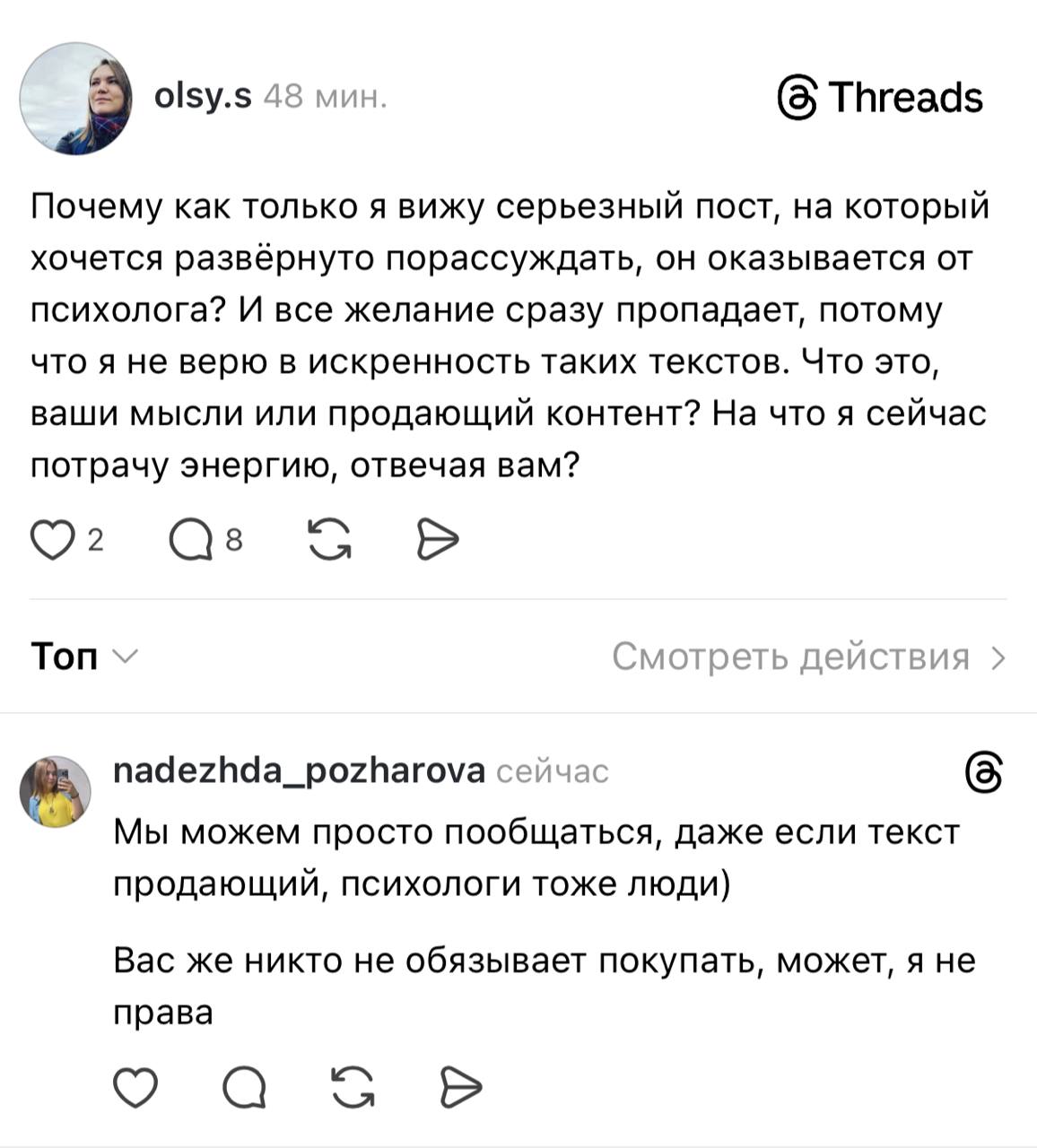 Особенно, когда я читаю что-то в соцсетях а-ля а мне терапевт не сказал, что у психологов не спрашивают о том, как они себя чувствуют