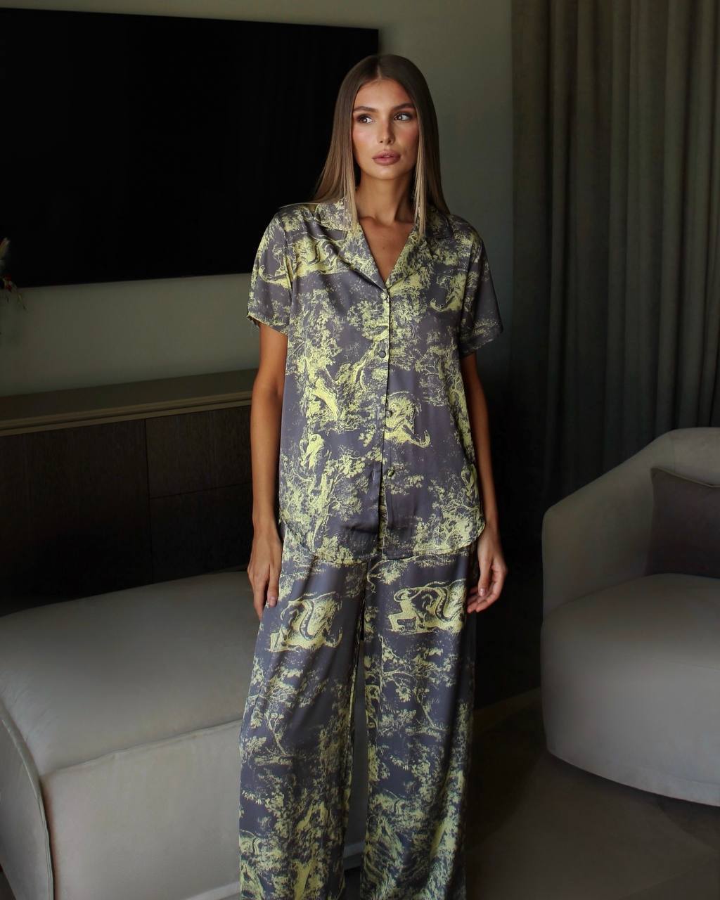 Нашла невероятно красивый,нежный шелковый костюм. Лаконичный дизайн подойдет для любой фигуры, делая образ более женственным и эстетичным.