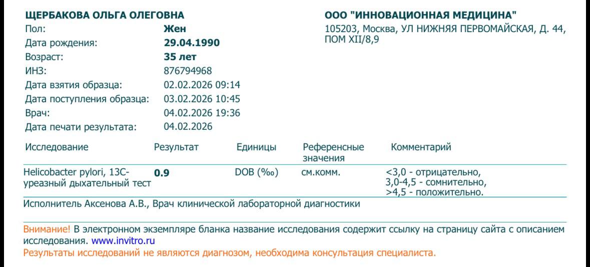 Пришёл результат анализа. Я была на 200% уверена, что он будет положительный. Но дыхательный тест показал, что хеликобактер пилори у меня отсутствует.