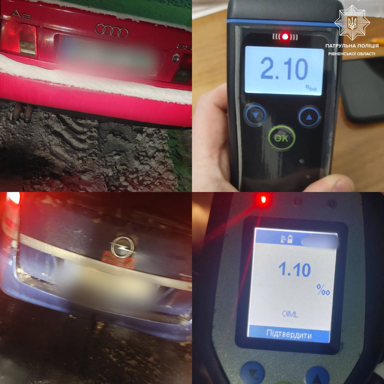 У Сарнах патрульні склали протоколи на двох нетверезих водіїв 🔹Нещодавно увечері на вулиці Польській, що у Сарнах, поліцейські зупинили автомобіль Audi за порушення ПДР: водій не увімкнув відповідний покажчик повороту при змінні напрямку руху. Під час перевірки документів інспектори у 49-річного водія виявили ознаки алкогольного сп’яніння. Огляд проводився у медичному закладі, результат — 2,10 проміле. На водія поліцейські склали протокол за ч. 1 ст. 130 (Керування у стані спʼяніння) КУпАП та винесли постанову за ч. 2 ст. 122 (Порушення правил користування світловими покажчиками повороту) КУпАП. 🔹А через деякий на вулиці Вишневій сарненські патрульні зупинили автомобіль Opel за порушення правил дорожнього руху. Інспектори під час спілкування виявили ознаки алкогольного спʼяніння у 30-річного водія. Чоловік огляд пройшов на місці зупинки, результат — 1,10 проміле. На правопорушника поліцейські склали адмінматеріали: • за ч. 1 ст. 130 (Керування у стані спʼяніння) КУпАП; • за ч. 1 ст. 126 (Водій не мав страхового поліса) КУпАП. ❗️Не сідайте за кермо напідпитку. Обирайте безпеку — свою та інших.