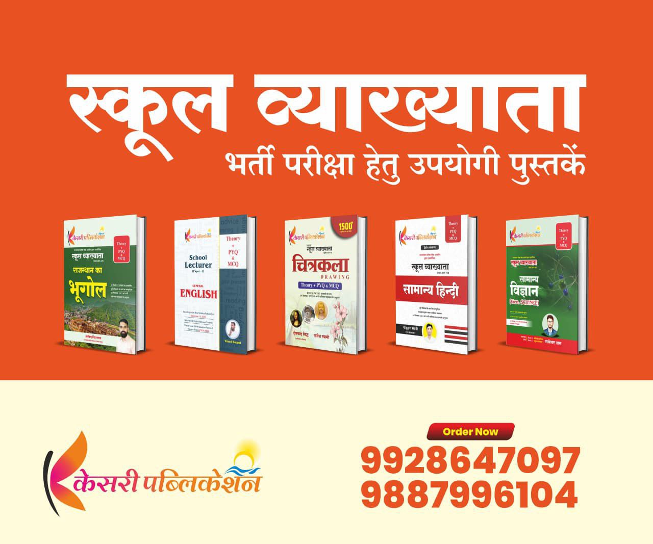 केसरी पब्लिकेशन की शानदार टीम द्वारा तैयार 1st ग्रेड की ये सभी पुस्तके संपूर्ण राजस्थान व ऑनलाइन भी उपलब्ध है।