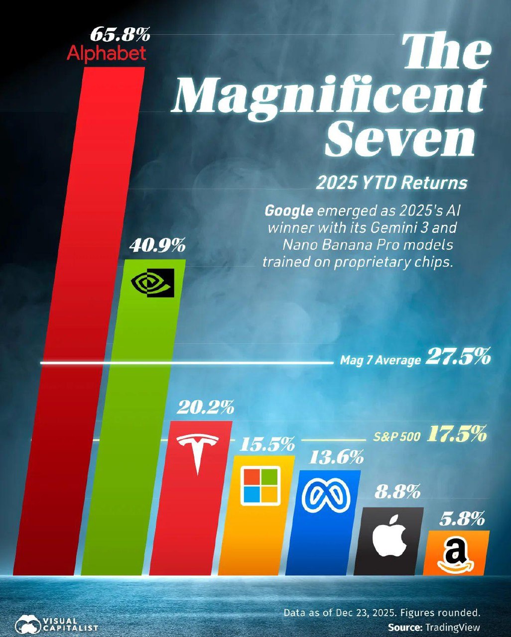 Google, кстати, в 2025 году стала самой прибольной для акционеров компаний из рейтинга SP500, даже больше, чем NVIDIA.
