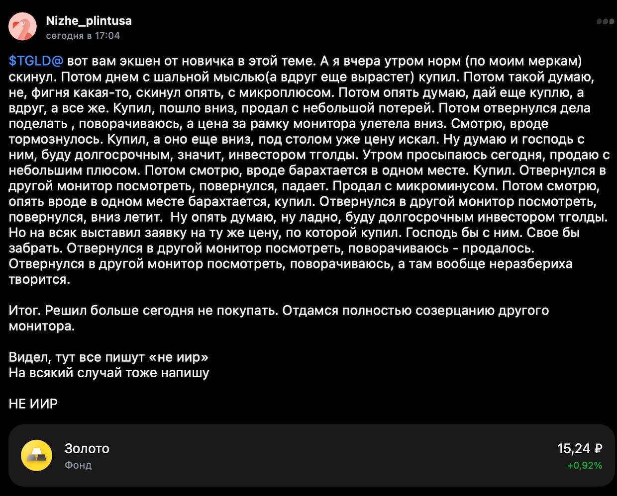 Две недели я шортил серебро и держал позицию с максимальными плечами. Это были две недели ада, каждый новый день - дикий рост. Я пил успокоительные и потерял много веса, выкуривал много сигарет и чувствовал себя уничтоженным. Всё, что я зарабатывал несколько месяцев - обнулилось, вместе с моими планами на жизнь. Но я держал позицию и не отпускал, спасало то, что мой брокер даёт маленькие плечи, но всё равно ушёл в минус 40% депо.