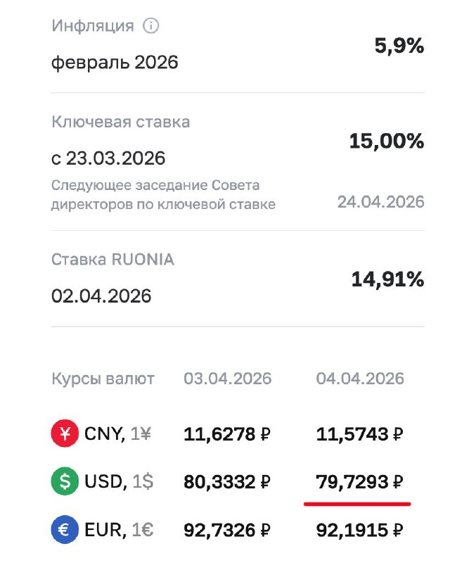 Банк России впервые с 13 марта опустил официальный курс доллара ниже 80 рублей
