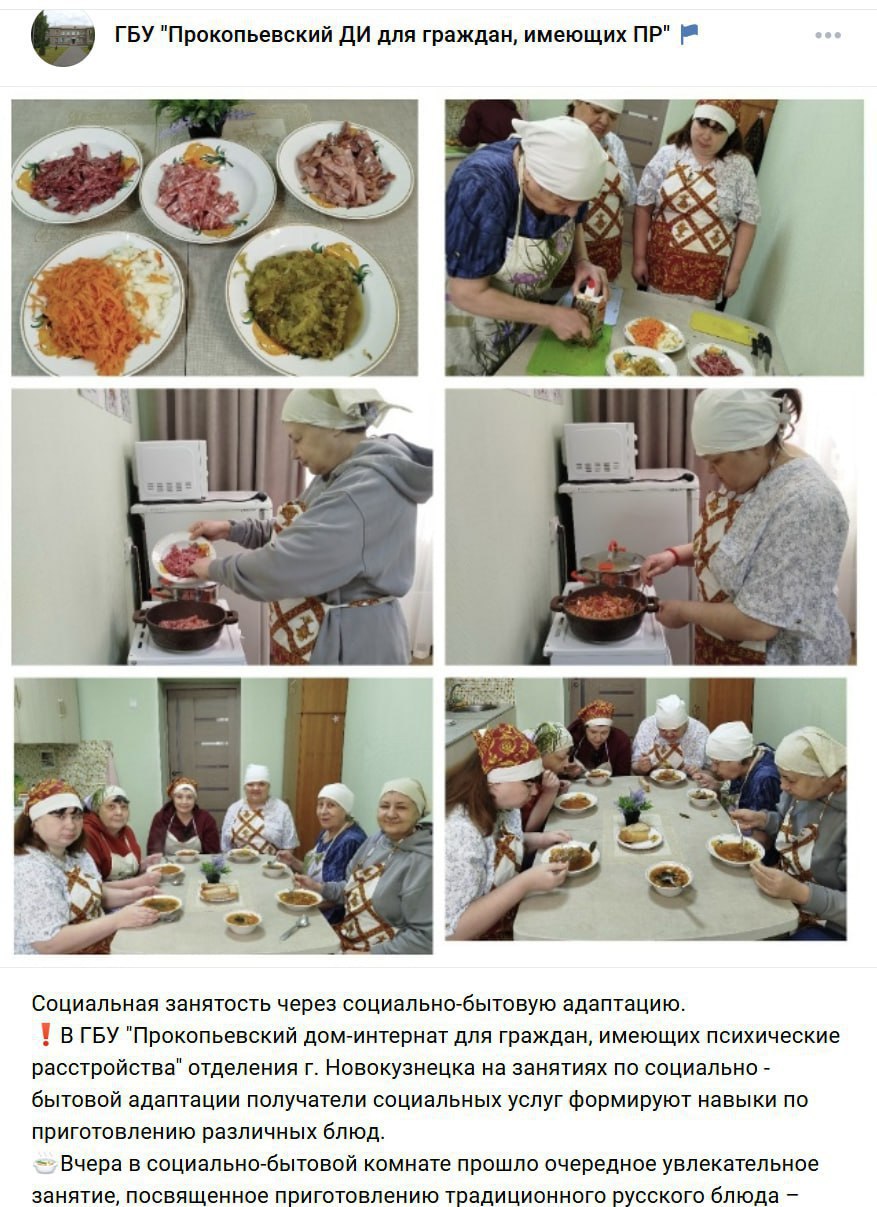 При этом в социальных сетях интерната выложены фото, где постояльцы готовят на занятиях по социально-бытовой адаптации.