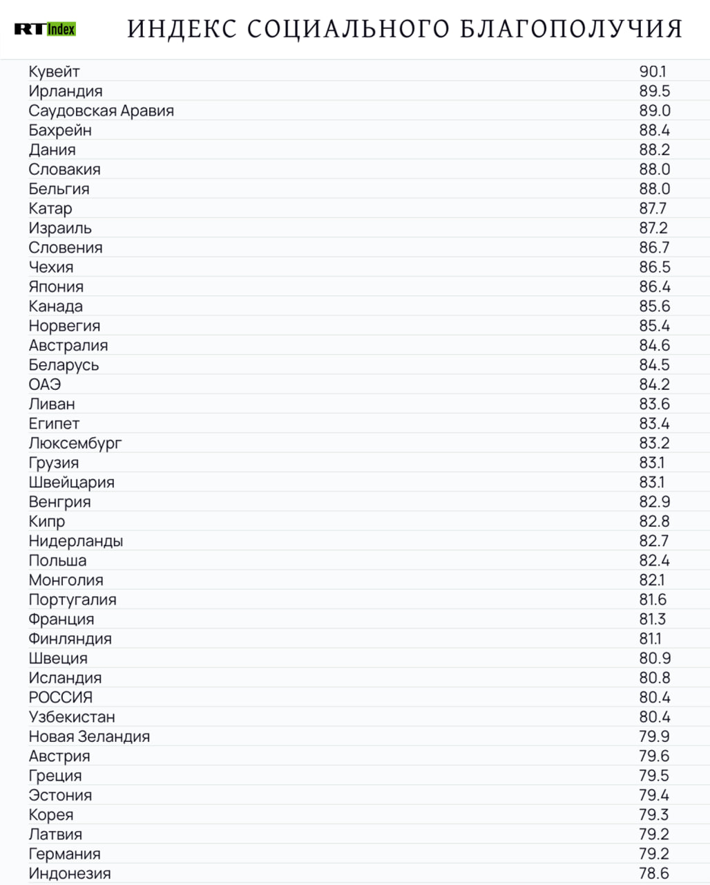 RT представил альтернативу западным «рейтингам успешности» стран — Индекс Социального Благополучия (ИСБ).