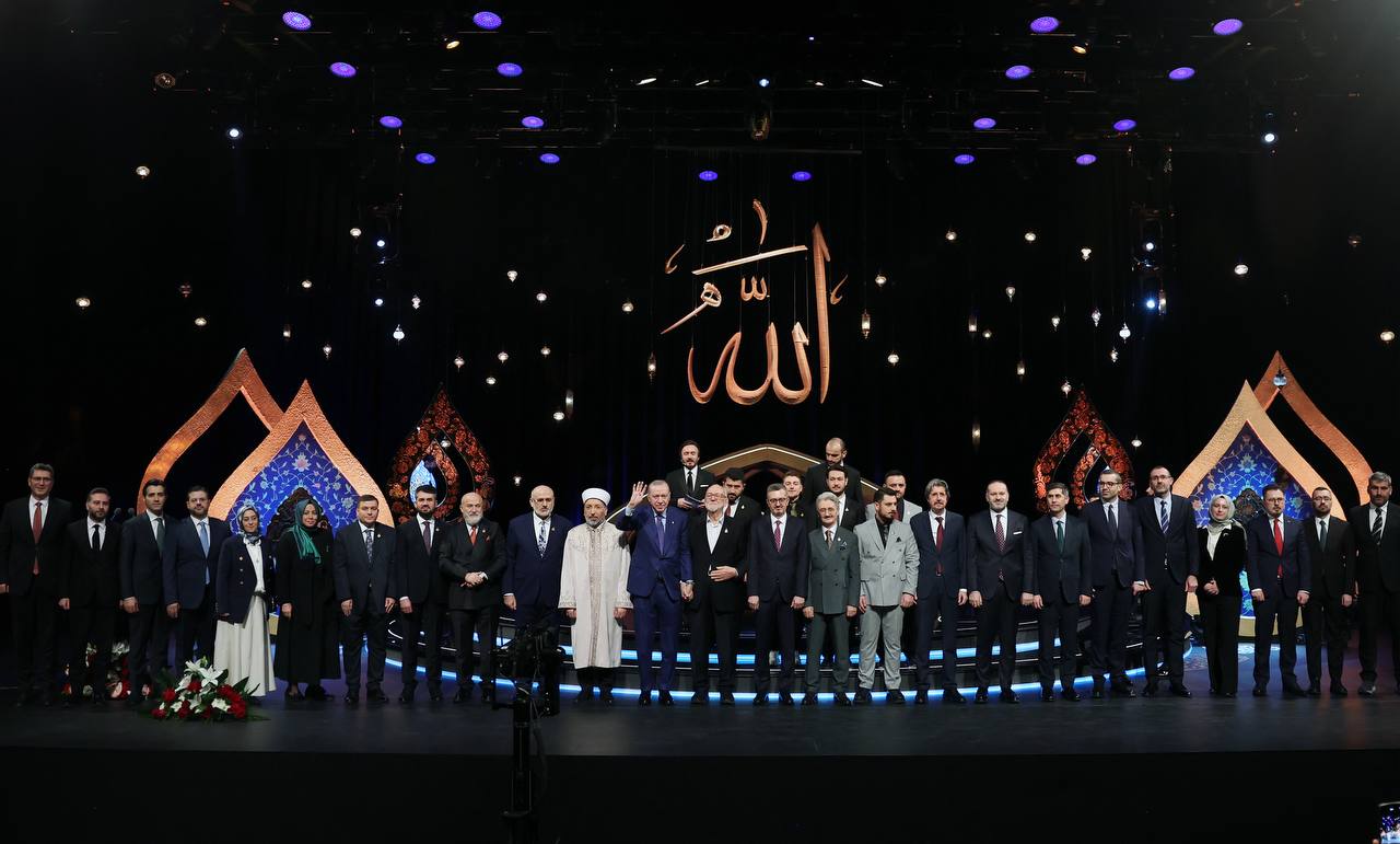 Kur’an-ı Kerim’i Güzel Okuma Yarışması Büyük Finali’nde ödüllerini takdim ettiğimiz, tilavetleriyle gönül bahçemizi yeşerten Kur’an bülbüllerini tebrik ediyorum.