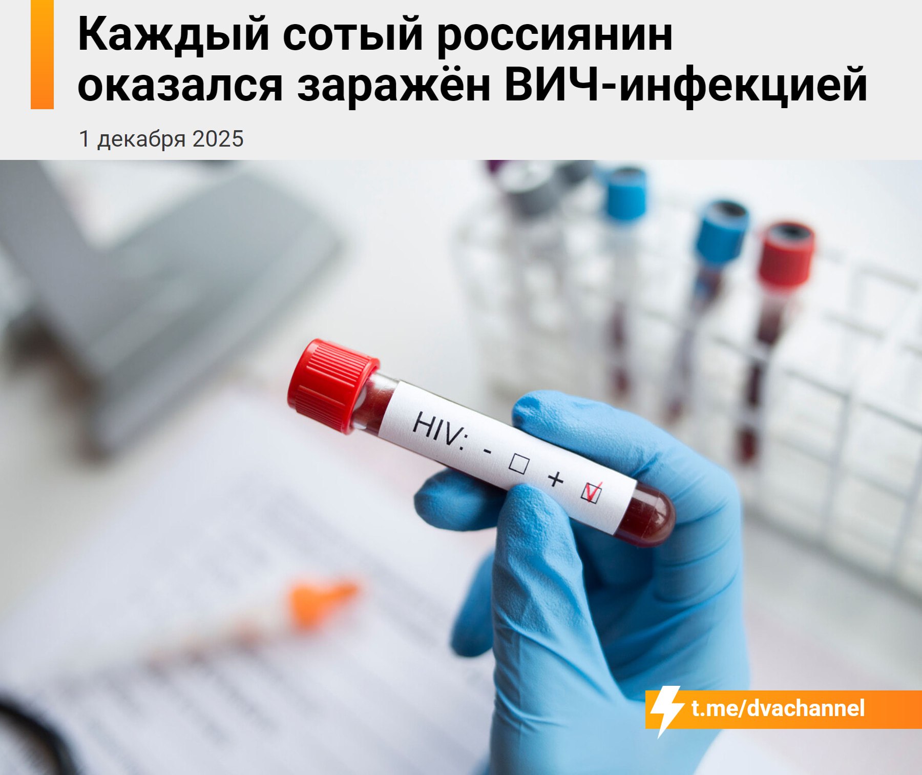 ⚡️Каждый сотый россиянин оказался заражён ВИЧ-инфекцией: сейчас такой диагноз имеют 1,25 миллиона человек, и это только те, у кого он официально подтверждён.