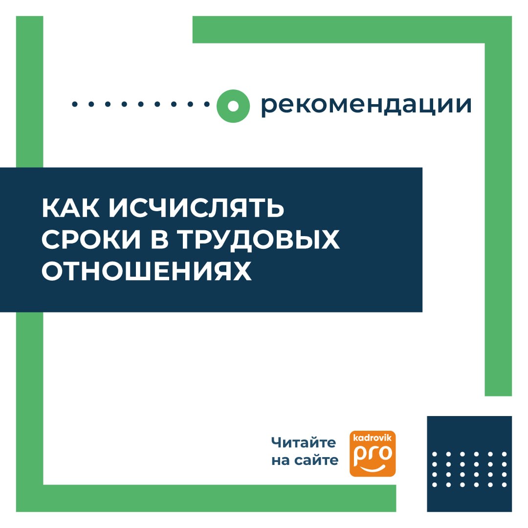 🧮 Сроки в трудовых отношениях – тема, которая только кажется простой. ТК определяет три способа исчисления сроков: календарной датой, периодом времени и указанием на событие. У каждого свои правила отсчета, которые в том числе зависят от количества выходных, дополнительных нерабочих и праздничных дней в месяце. При исчислении сроков также стоит учитывать, что ТК устанавливает случаи, когда срок можно сократить или, наоборот, продлить.