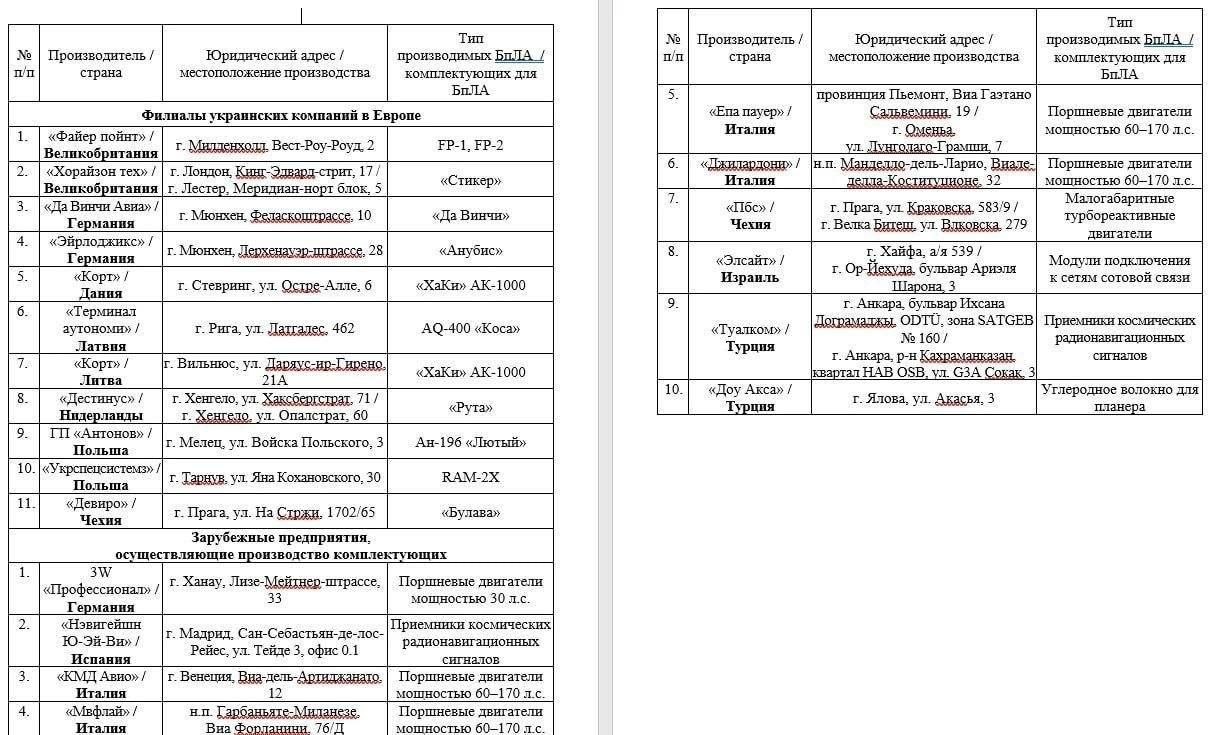 — Филиалы украинских компаний, занимающихся производством БПЛА, расположены в восьми европейских странах;