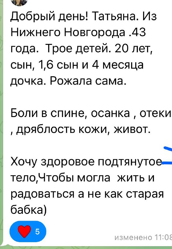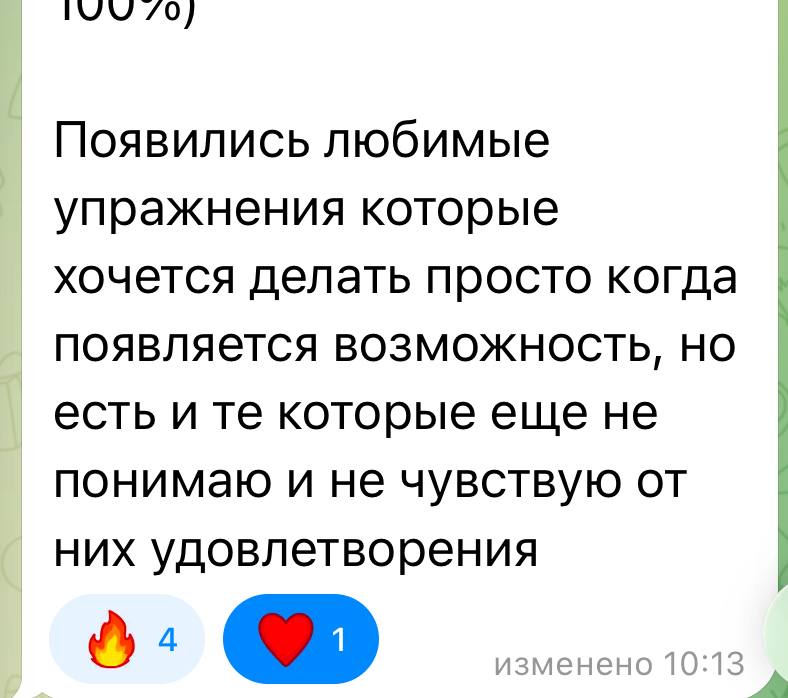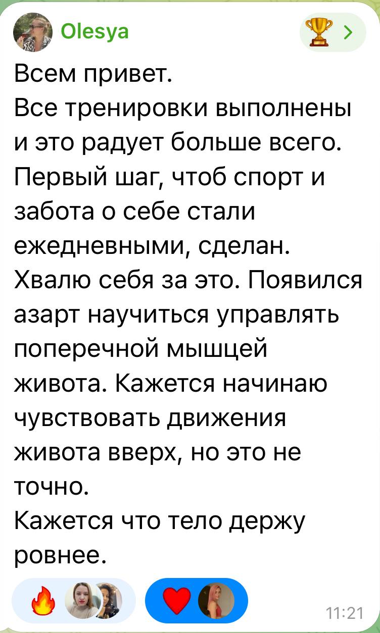 Согласитесь, можно сразу почувствовать: человек пришёл не просто получить бесплатную тренировку и пожаловаться на нехватку времени. Она готова работать, даже когда сложно, когда дети кричат, плачут, висят на сисе, и по-настоящему понимает, зачем пришла на курс. Это и есть залог перемен.