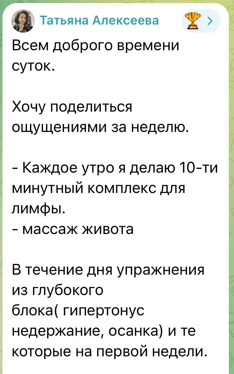 5️⃣ Находят для себя рабочие инструменты, например лимфодренажные упражнения, самомассаж живота, диафрагмальное дыхание и видят результат — даже с самого старта, даже в непростых условиях.