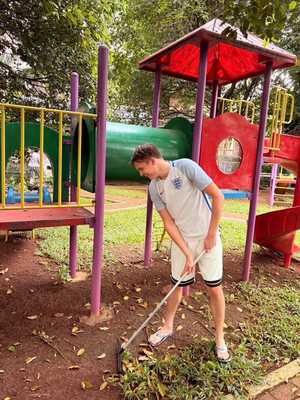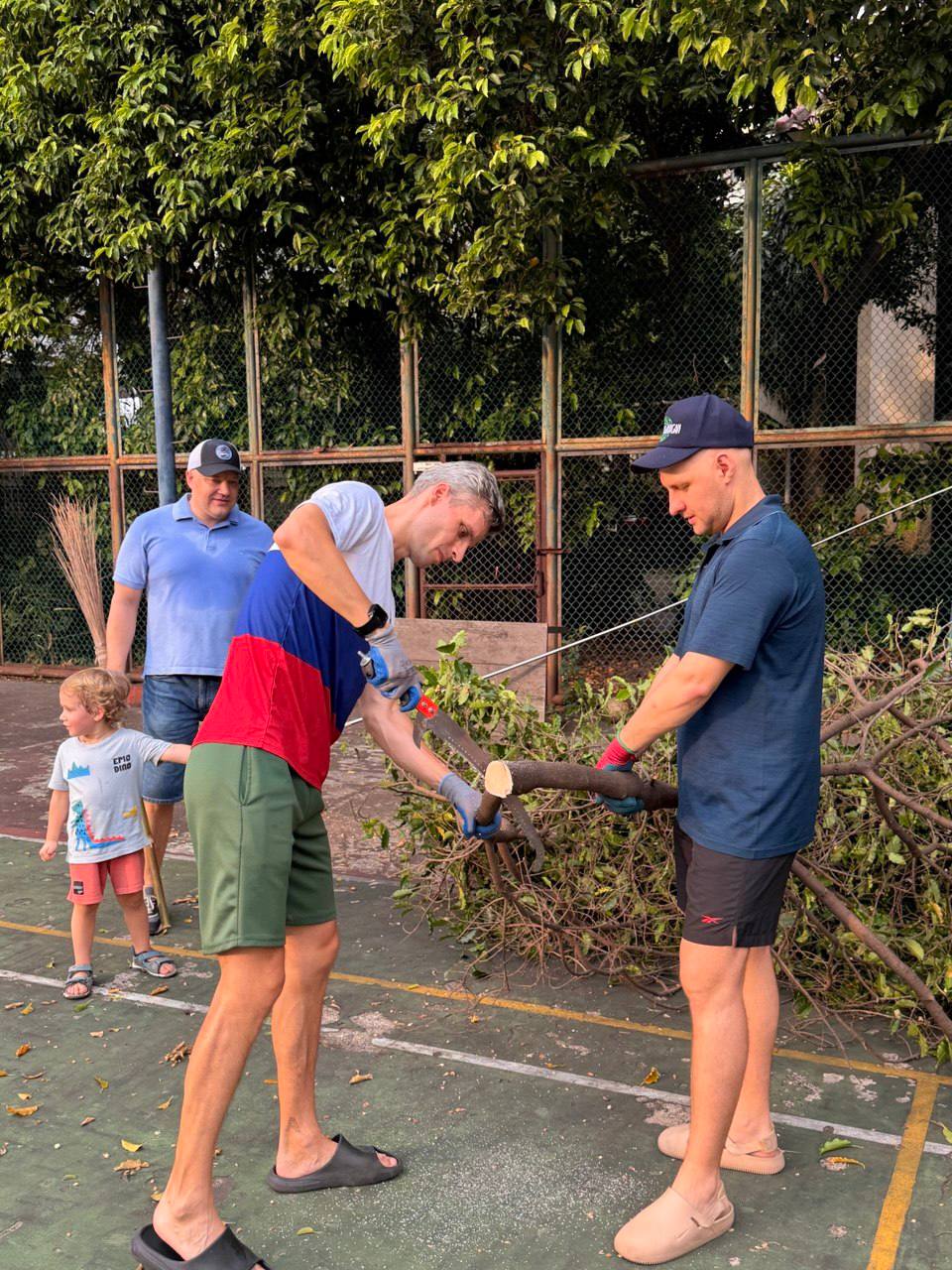 🧹 Сотрудники Посольства убрали сухие ветки и опавшую листву, обновили детскую площадку, а также провели уборку на прилегающей территории.