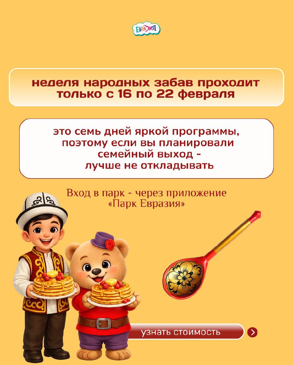 👋 Дорогие друзья, по всему Кыргызстану пройдут яркие народные масленичные гуляния! Организаторы приглашают всех на веселый праздник проводов зимы!