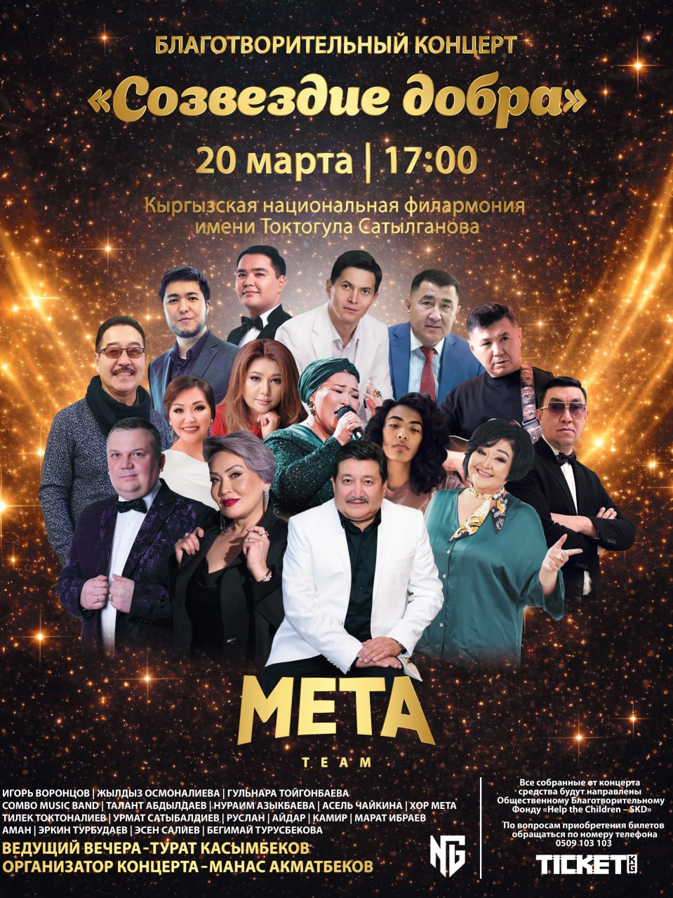 📆 20 марта в 17:00 звезды кыргызской эстрады выйдут на сцену Кыргызской национальной филармонии им. Т. Сатыгланова, чтобы зажечь огни добра и надежды. Концерт «Созвездие добра» - это не просто выступление, это музыка, которая спасает жизни!