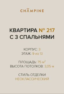 Среди доступных вариантов — трёхкомнатная квартира №217 площадью 74,9 м².