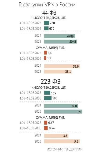 В России продолжают расти госзакупки VPN — только за первый квартал их стало более 1000, что примерно на 22% больше, чем годом ранее. Такие сервисы активно используют госструктуры для работы и передачи данных.