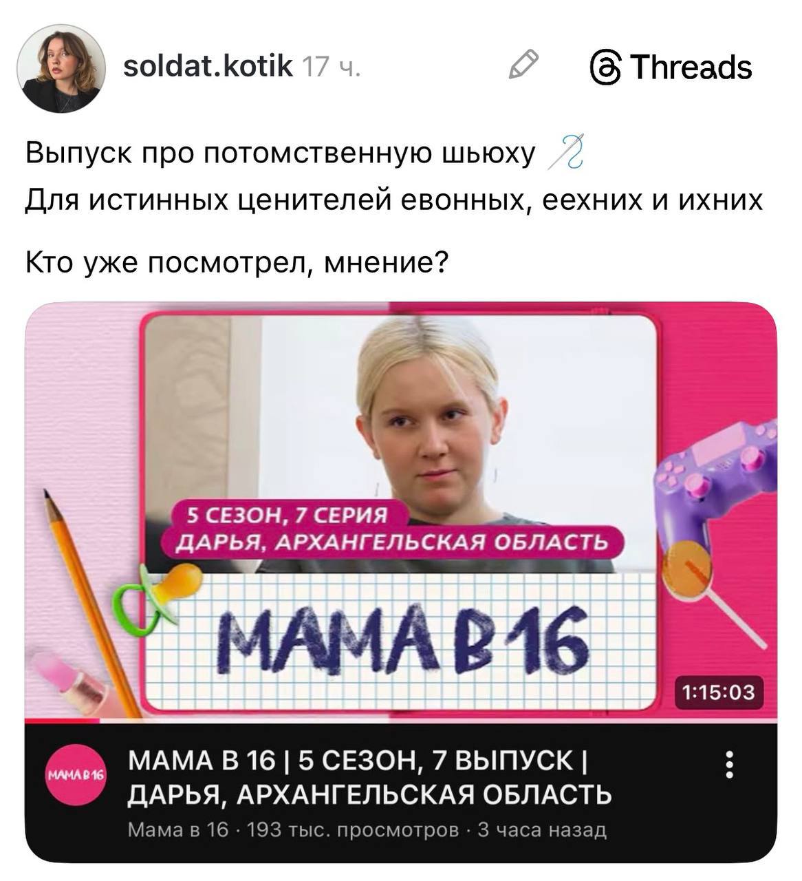 Мама в 16 анонсировала выпуск про тарелочницу. В тизере 16-летняя девушка называет парня ресурсом, а тот, чтобы удовлетворять все её хотелки, влезает по уши в долги.