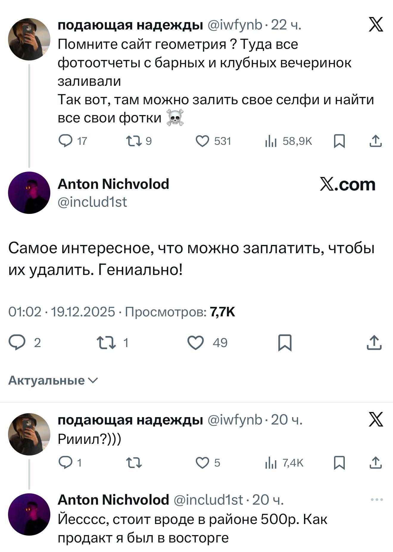 Миллениалы пошли на Геометрию, один из самых популярных сайтов нулевых годов, где выкладывали фотоотчёты после вечеринок. Оказалось, что он не только жив, но и придумал гениальный план монетизации — за деньги там можно удалить все свои фотографии и грехи молодости. А найти свои фото (или любого другого человека) можно по загруженному селфи.
