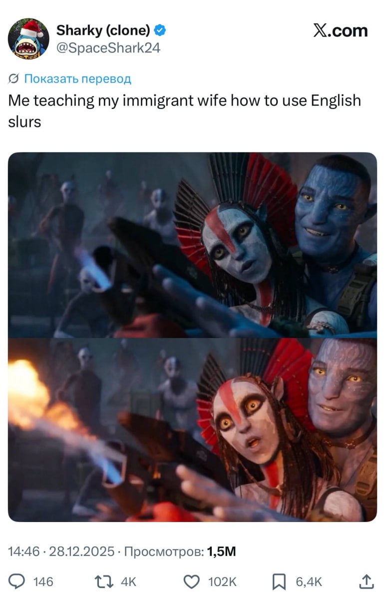 У Аватара наконец-то появился шаблон для мемов. Весь последний месяц Кэмерона ругали за то, что Аватар — самая переоценённая серия в истории кино. Картины собирают миллиарды, но имеют абсолютно нулевое культурное влияние: персонажи пустые, диалоги не цитируют, а за 15 лет у фильмов нет ни одного хорошего мема.