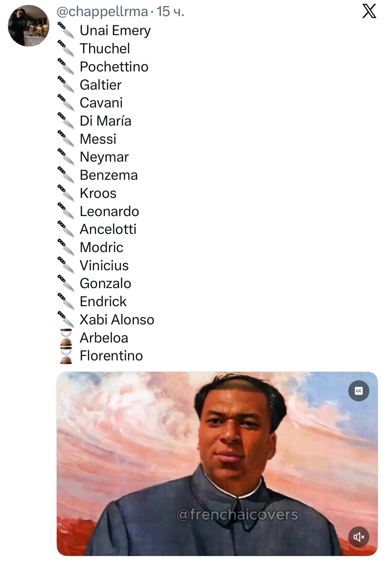 «Худший диктатор на планете». Реал Мадрид уволил главного тренера — и теперь мировой Твиттер сравнивает Килиана Мбаппе с Мао Цзэдуном и форсит с ним мемы. Причина — в его влиянии и эгоизме. За 10 лет профессиональной карьеры у Мбаппе сменилось 9 тренеров. В ПСЖ только один тренер смог продержаться больше полутора лет, а Хаби Алонсо проработал в Реале только 7 месяцев.