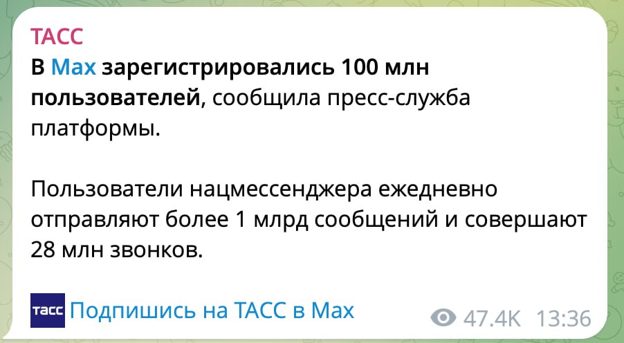 Поздравляю мессенджер Max со 100 млн пользователей. Действительно выдающийся результат меньше чем за год. Но самое главное не цифра, а то, как именно этого добились. Ведь когда ты делаешь национальный мессенджер, всегда есть соблазн воспользоваться госресурсом, чтобы схитрить и быстрее прийти к цели. Тем не менее, ради Max: