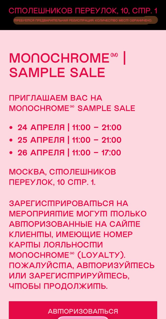 Скандальный Monochrome пускает клиентов на распродажу только по предварительной записи. На ней экономные москвичи могут купить пуховик за 40 тысяч вместо 70 или бракованную футболку не за 14, а за 10 тысяч рублей.
