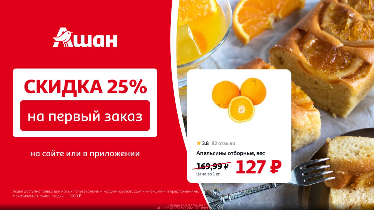 1) Регистрируйся по ссылке https://auchanru.page.link/fMNh?erid=2SDnjeP7GC1
