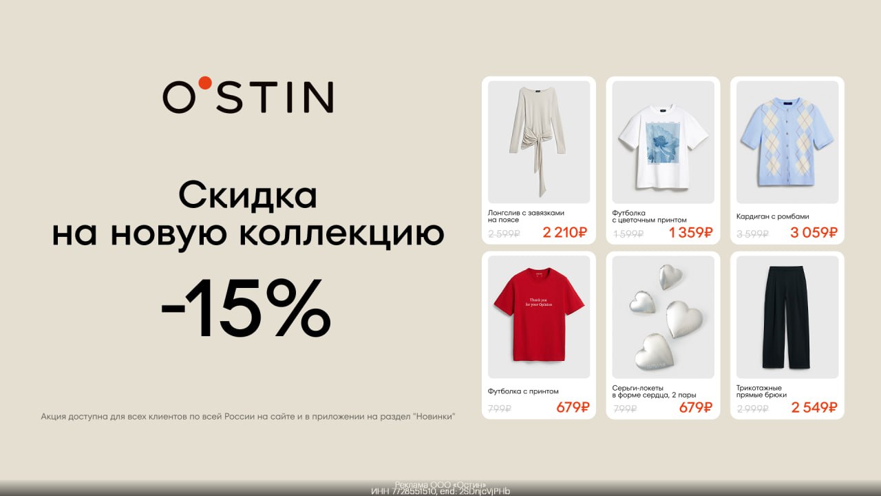 Промокод действует на женскую, мужскую и детскую одежду, не суммируется с другими акциями и скидками