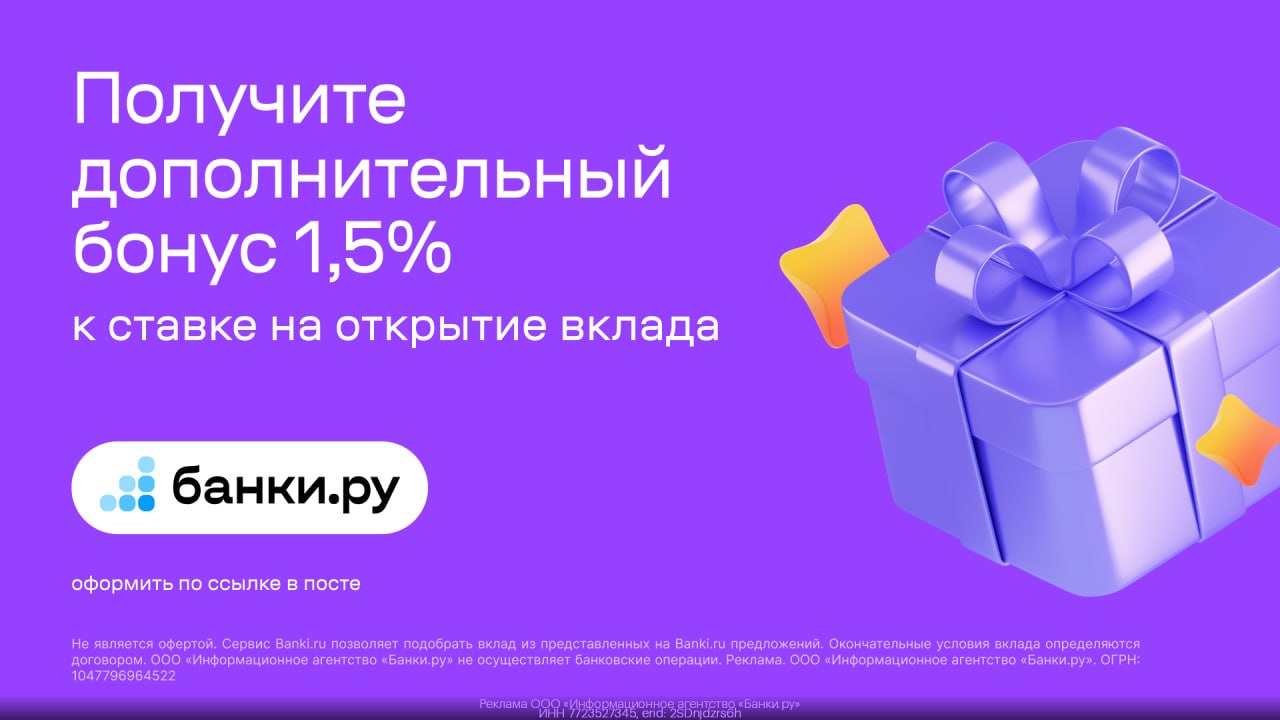 А также бонус +1,5% годовых к ставке дополнительно при открытии⚡️