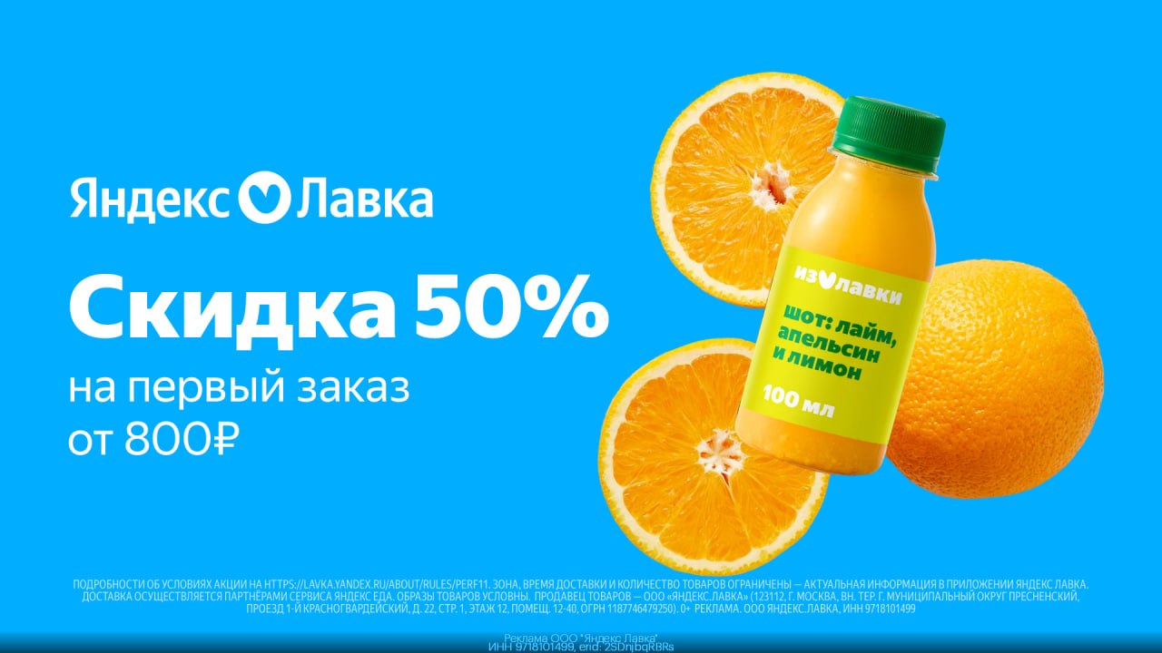 🟢 12L8CBYM — скидка 50% на 2 первых заказа от 1200₽ при наличии готовой еды в чеке (максимум — 600₽)
