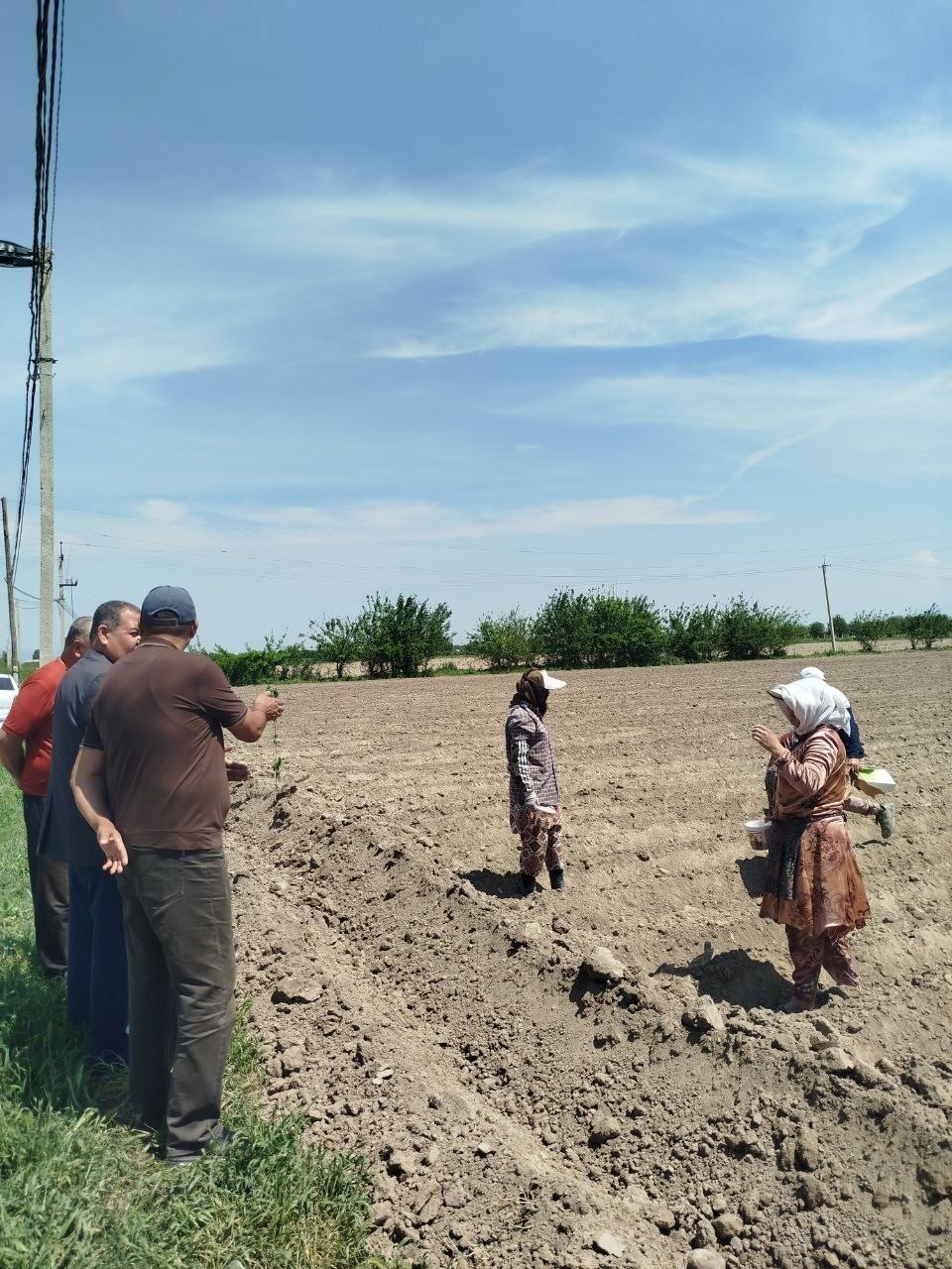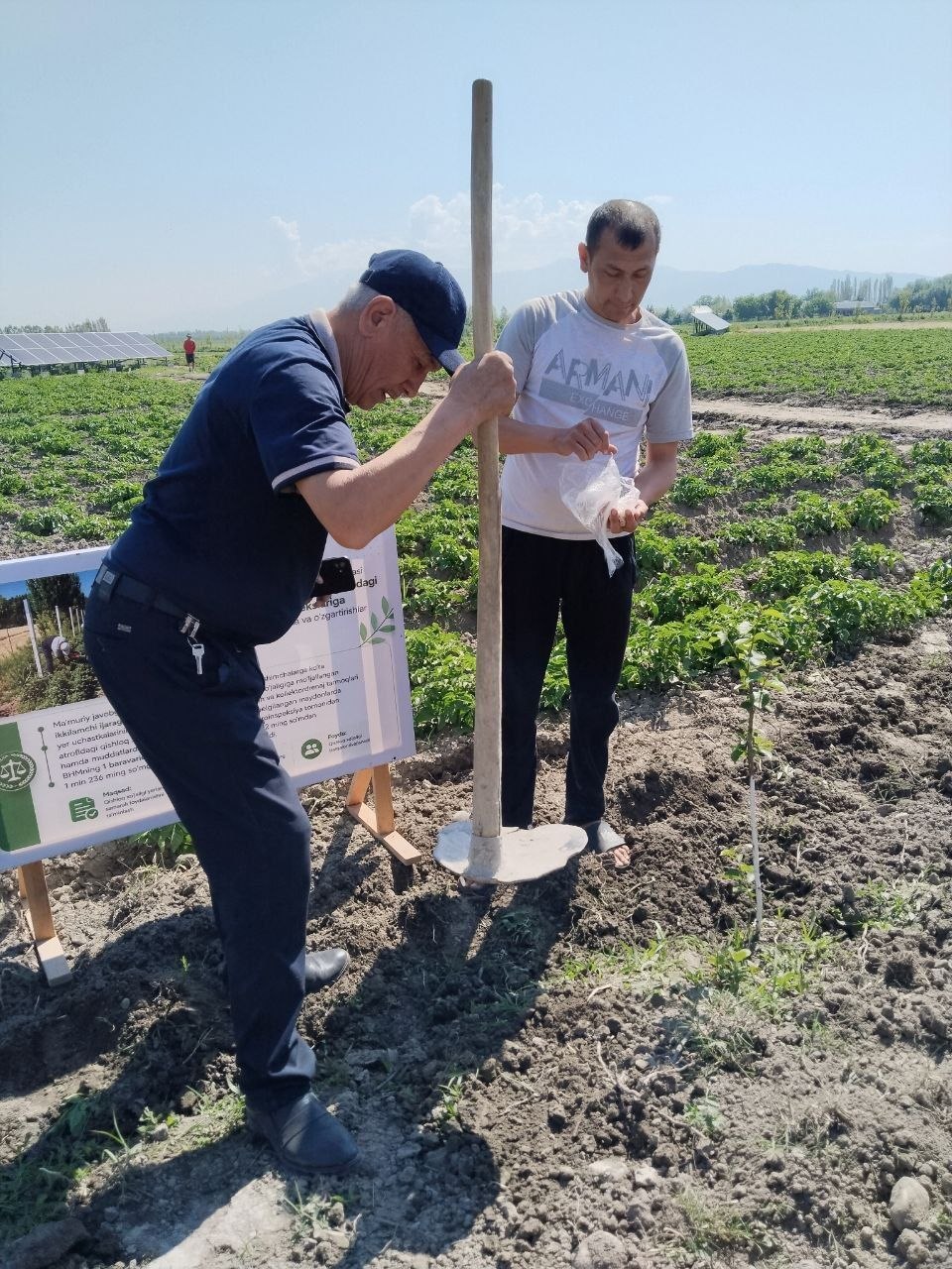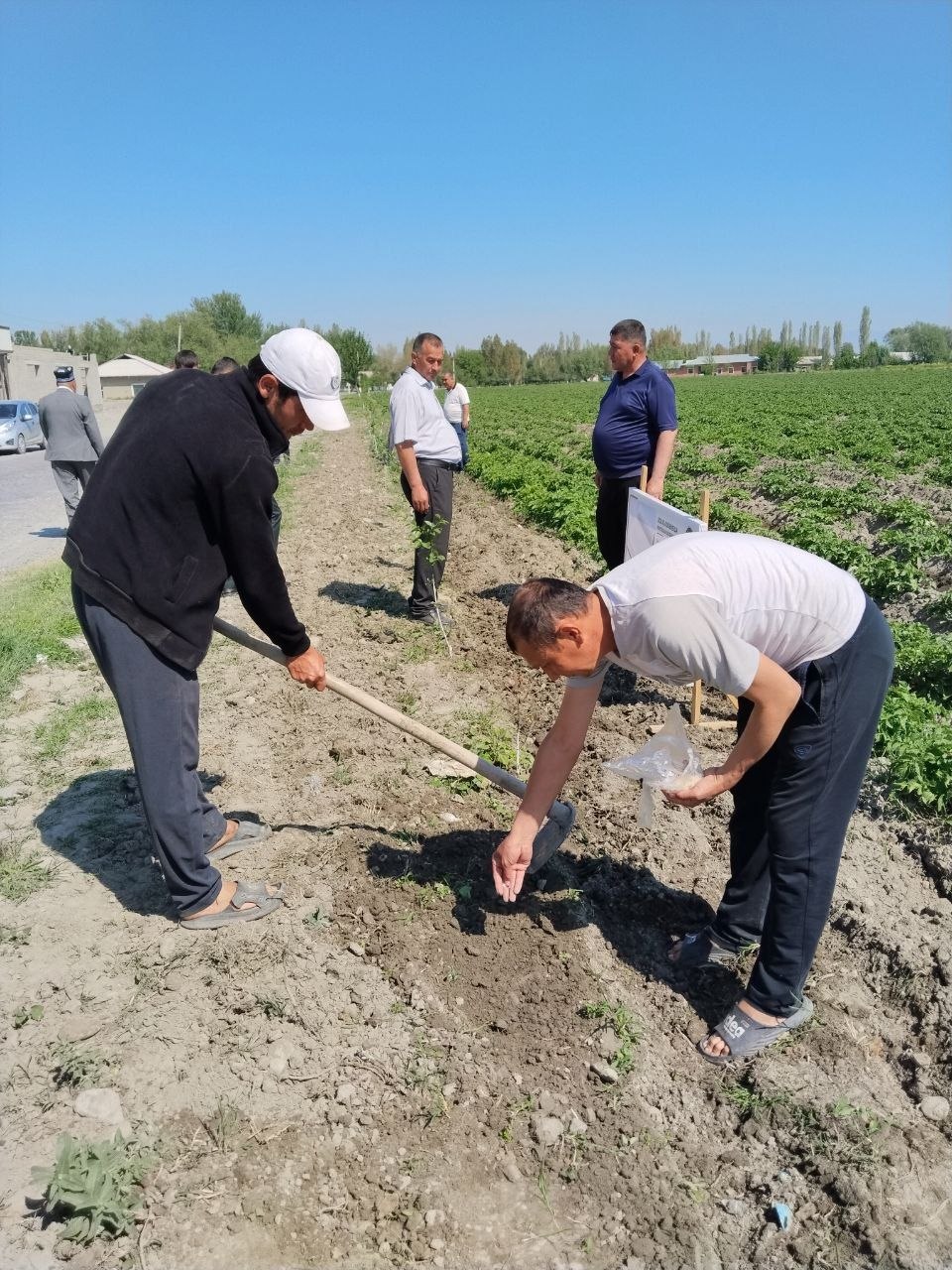 Fermer xo‘jaligida 2,5 gektarlik bog‘ qator oralariga sarimsoq, piyoz va kartoshka ekildi. Shuningdek, dala chetiga oshqovoq ekinlari ham ekish ishlari amalga oshirilmoqda.