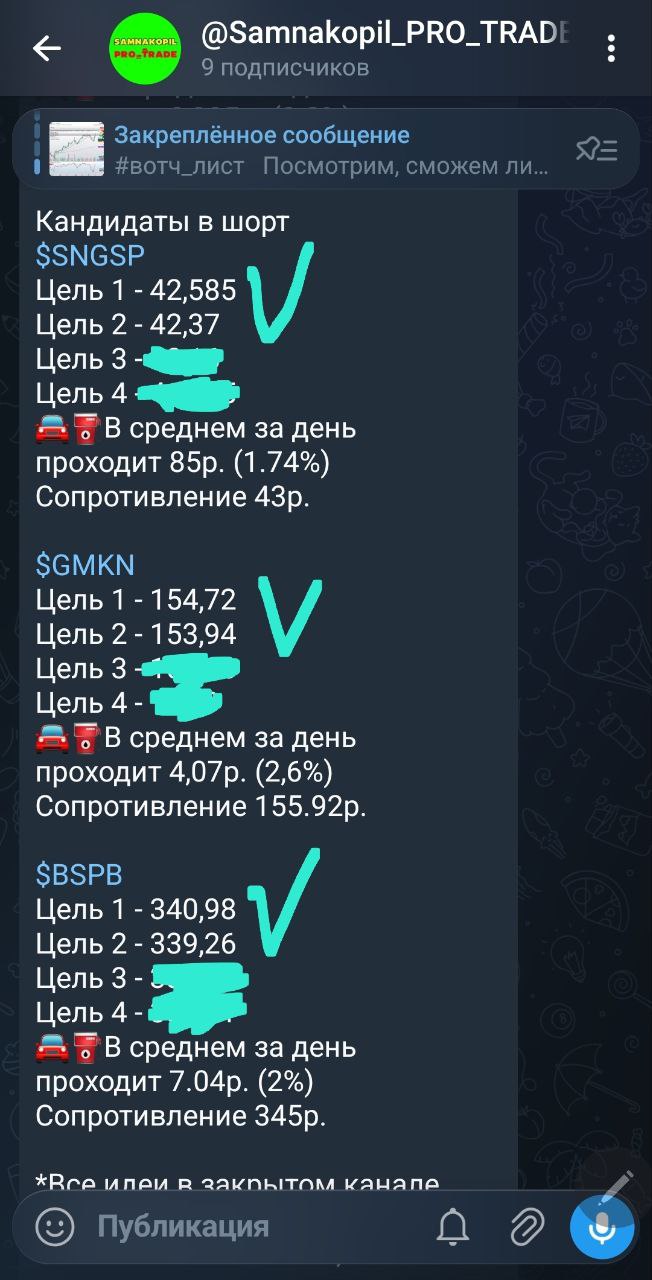 💡 В закрытом канале @Samnakopil_PRO_TRADE в вторник отработали 8 идей и 14 целей