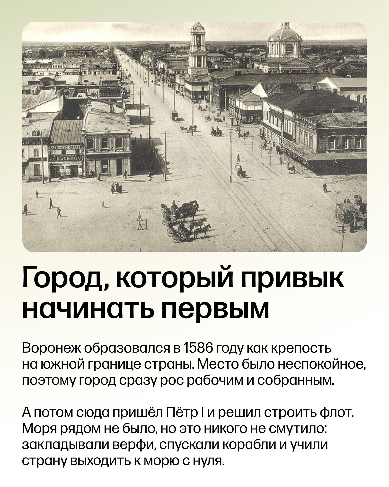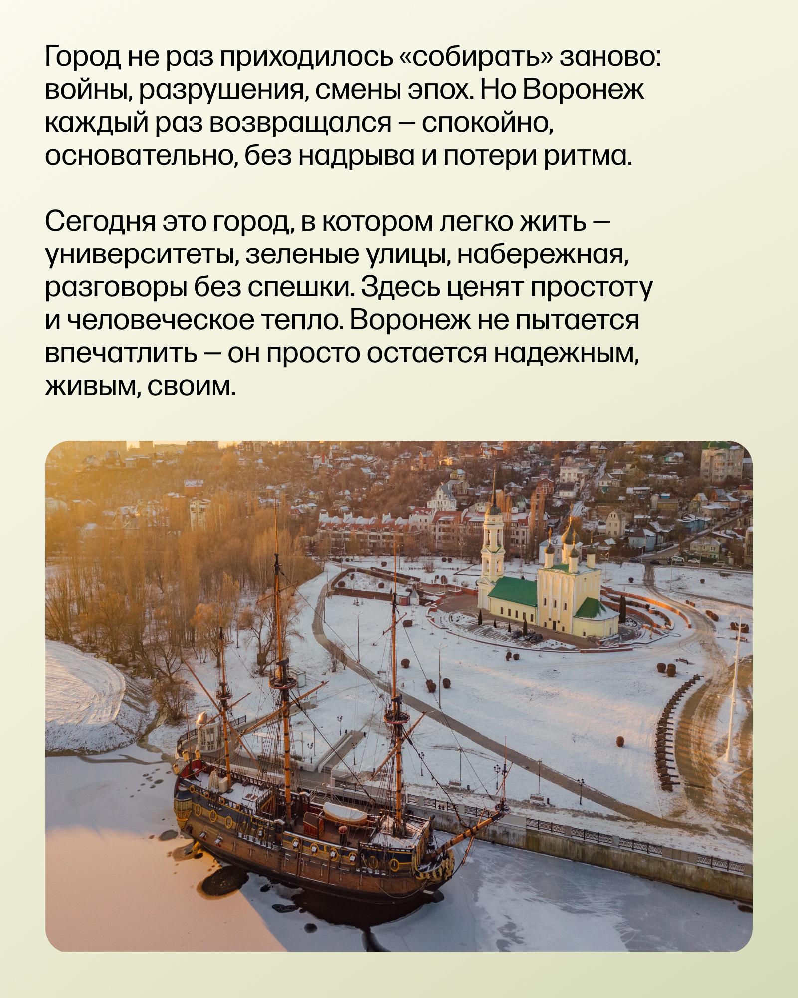 Сегодня едем в фруктово-ягодный Воронеж. В карточках: история города, интересные локации, заметные места, топовые лаунжи и ответ на вопрос «почему фруктово-ягодный?».