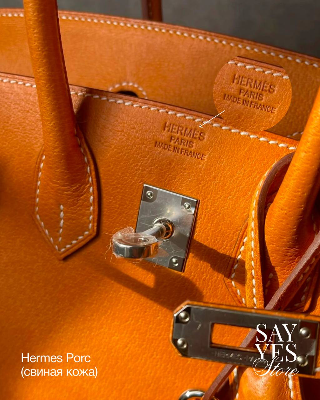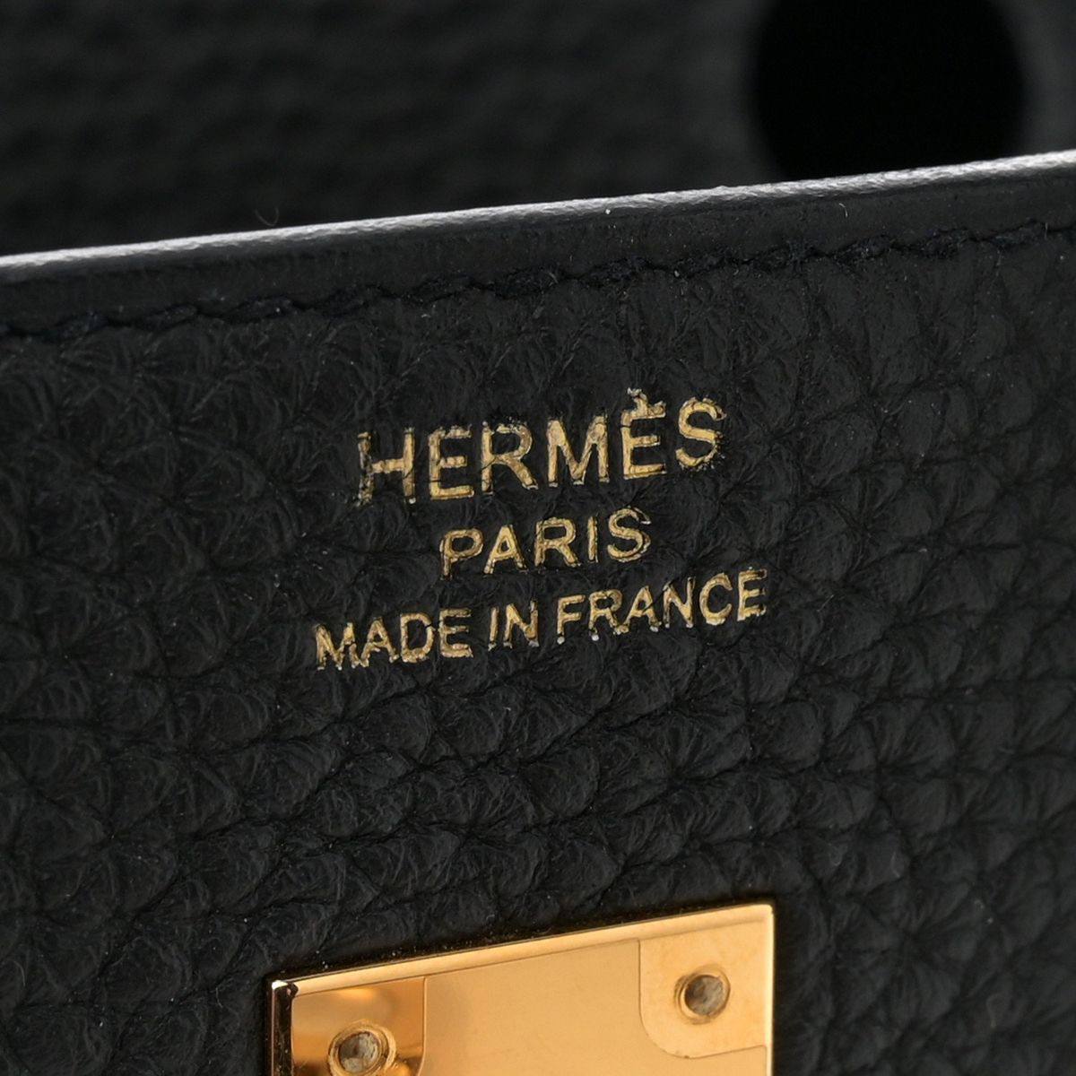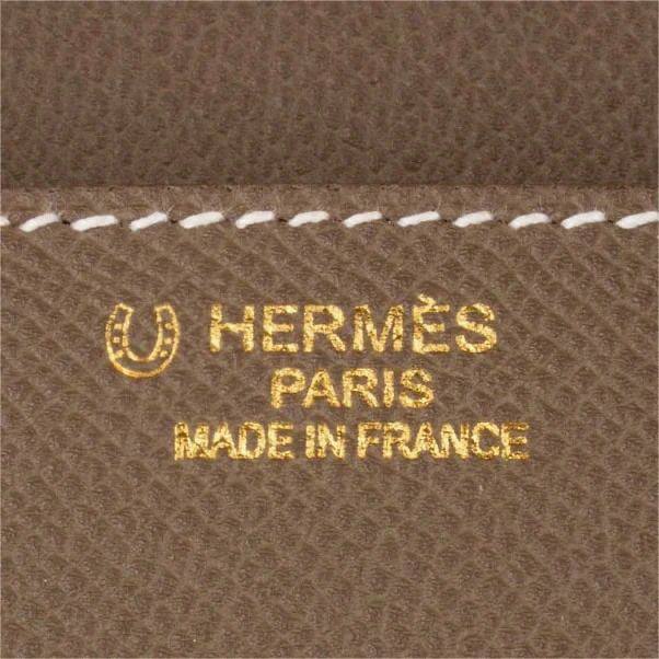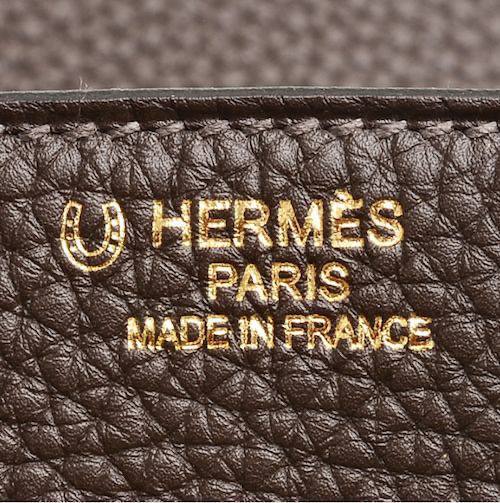 Штамп Hermès Paris Made in France наносится вручную методом горячего тиснения клише. Это не лазерная гравировка и не автоматическая промышленная маркировка, поэтому глубина, чёткость и насыщенность оттиска могут немного отличаться от изделия к изделию. Это нормальная особенность ручного процесса.