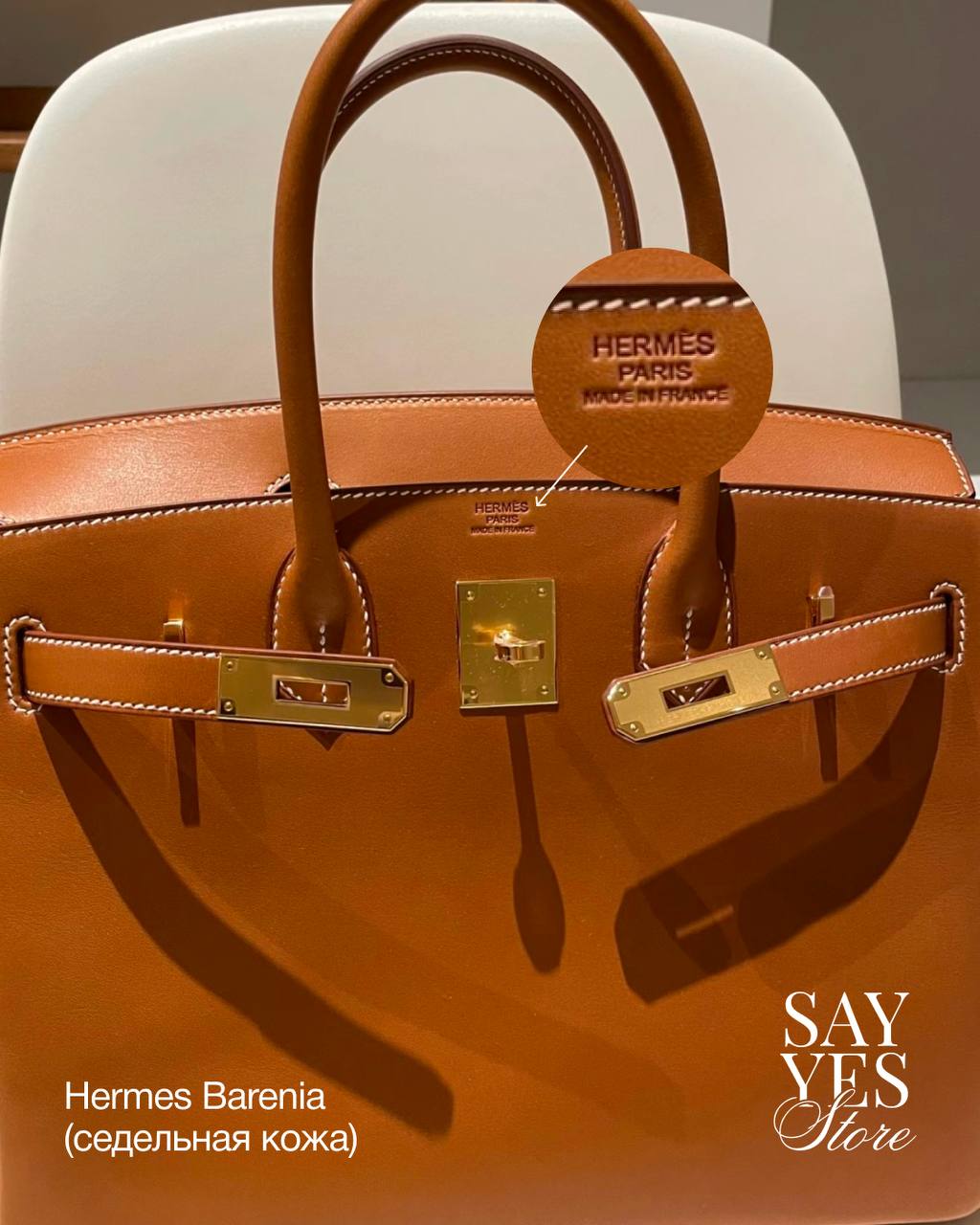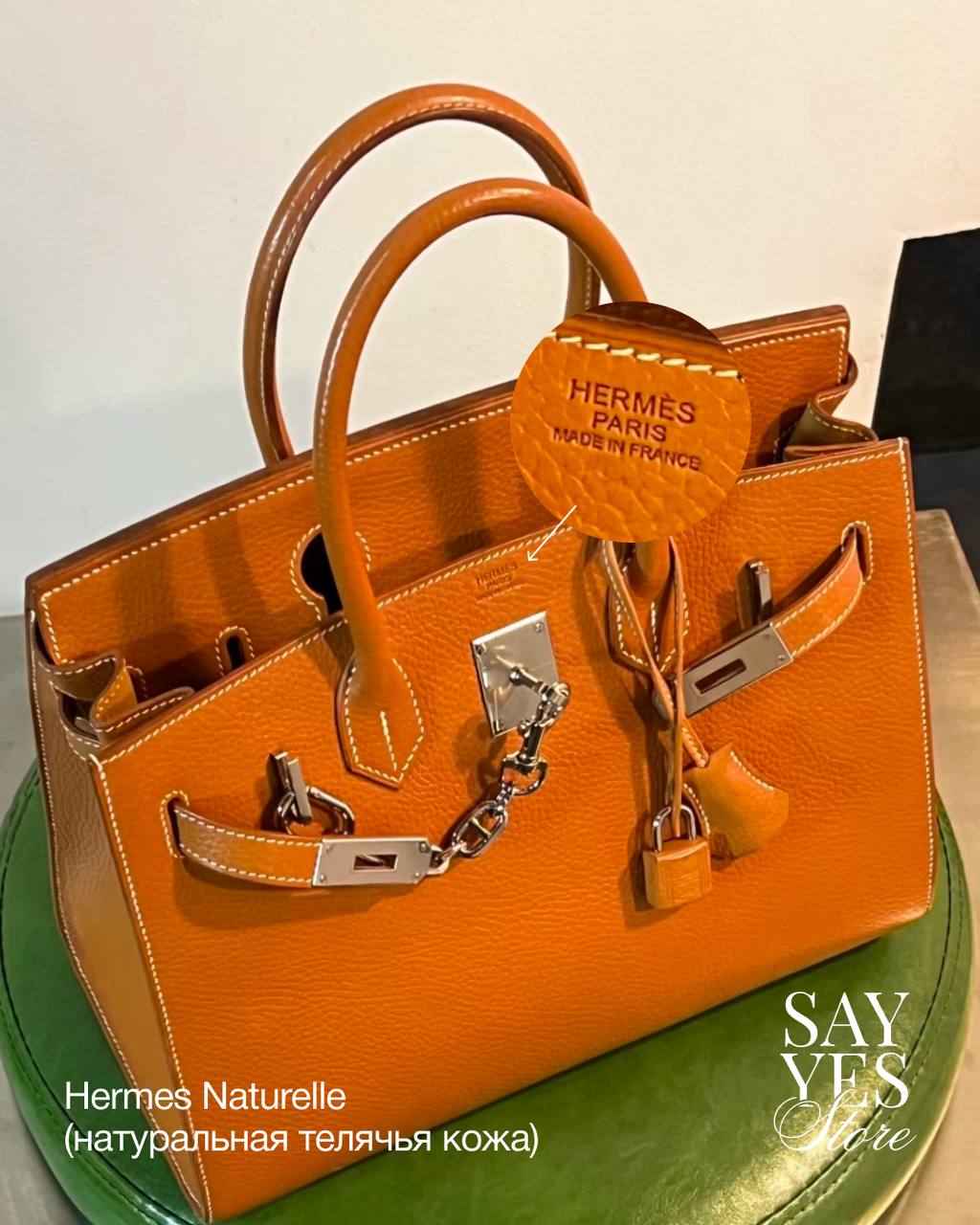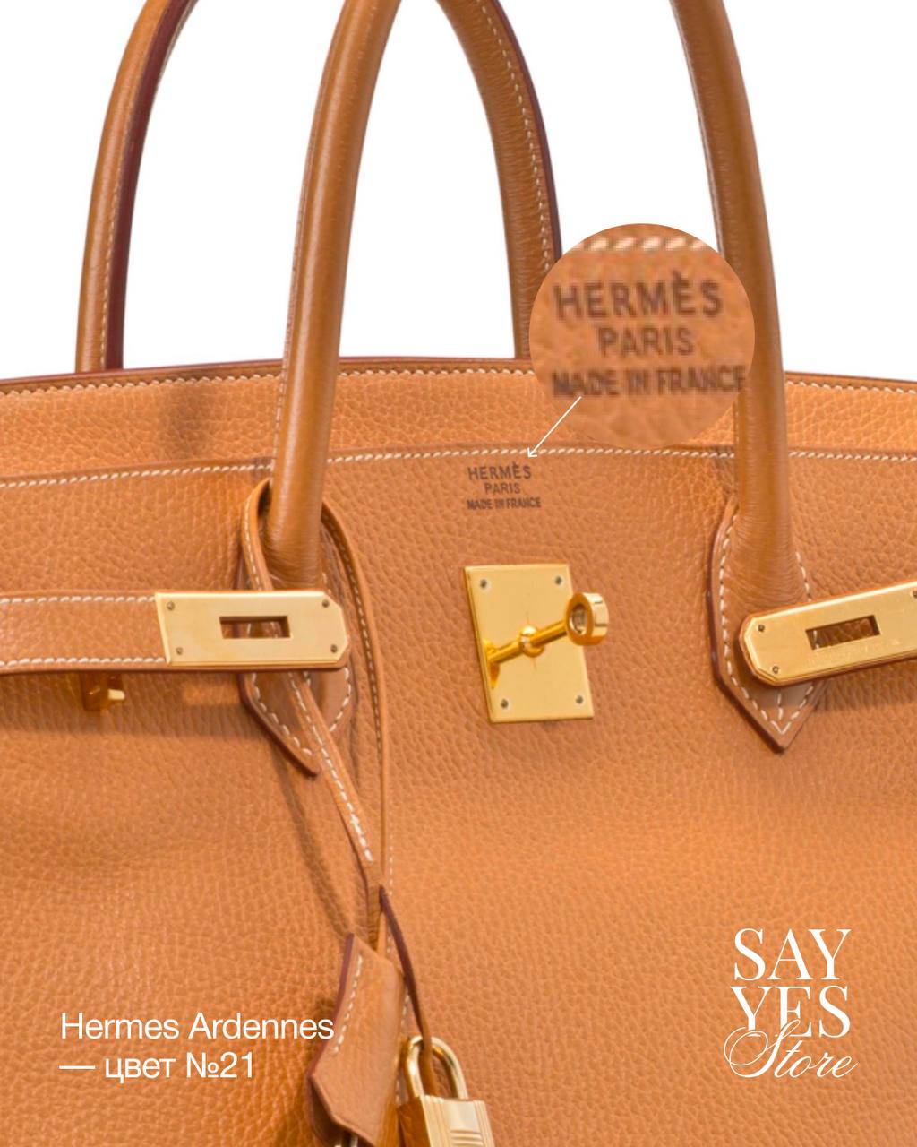 Штамп Hermès Paris Made in France наносится вручную методом горячего тиснения клише. Это не лазерная гравировка и не автоматическая промышленная маркировка, поэтому глубина, чёткость и насыщенность оттиска могут немного отличаться от изделия к изделию. Это нормальная особенность ручного процесса.