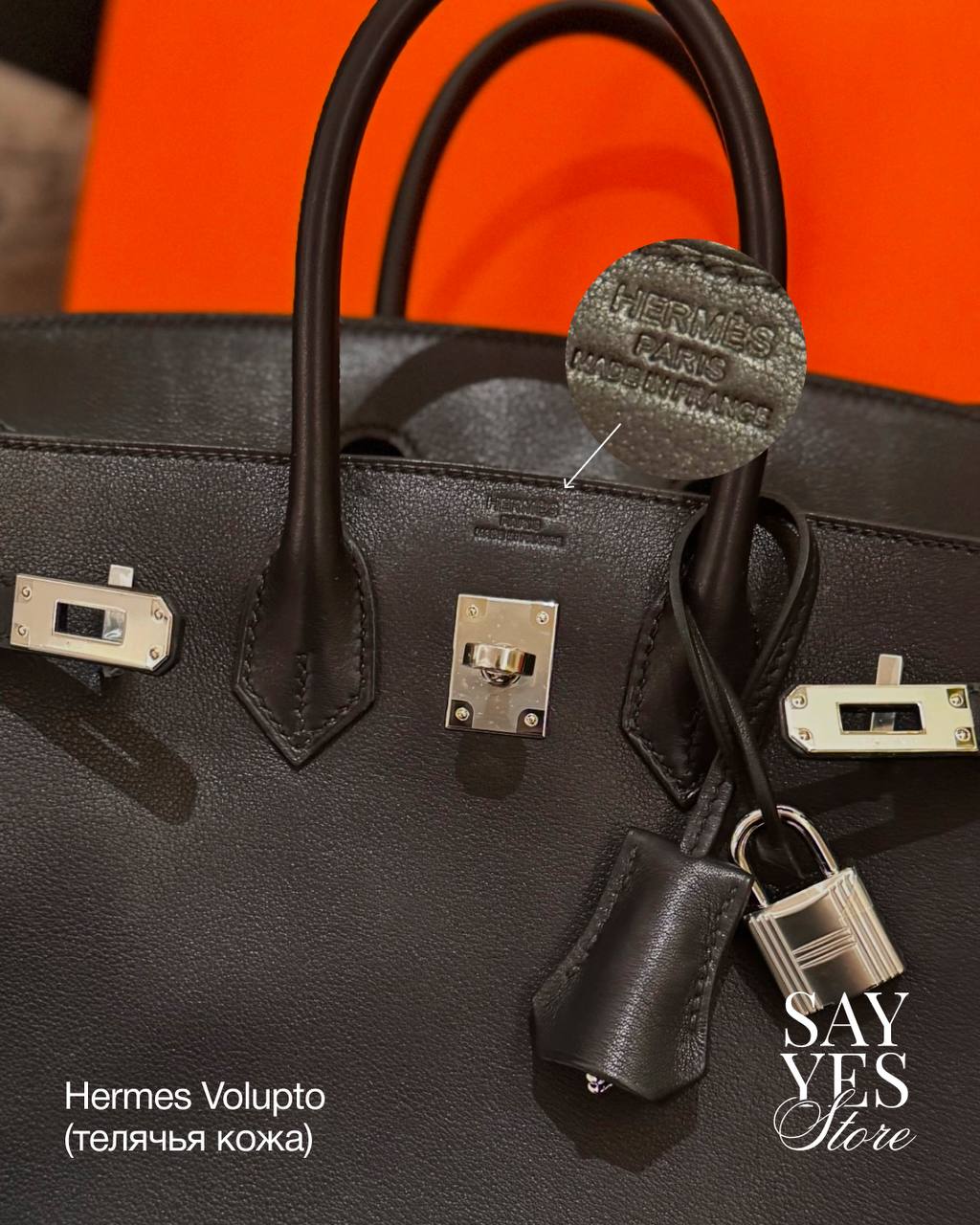На коже Clemence или Togo зерно более живое и подвижное. При нагреве кожа может слегка «играть», поэтому контур букв иногда выглядит менее чётким, особенно на рельефной поверхности.