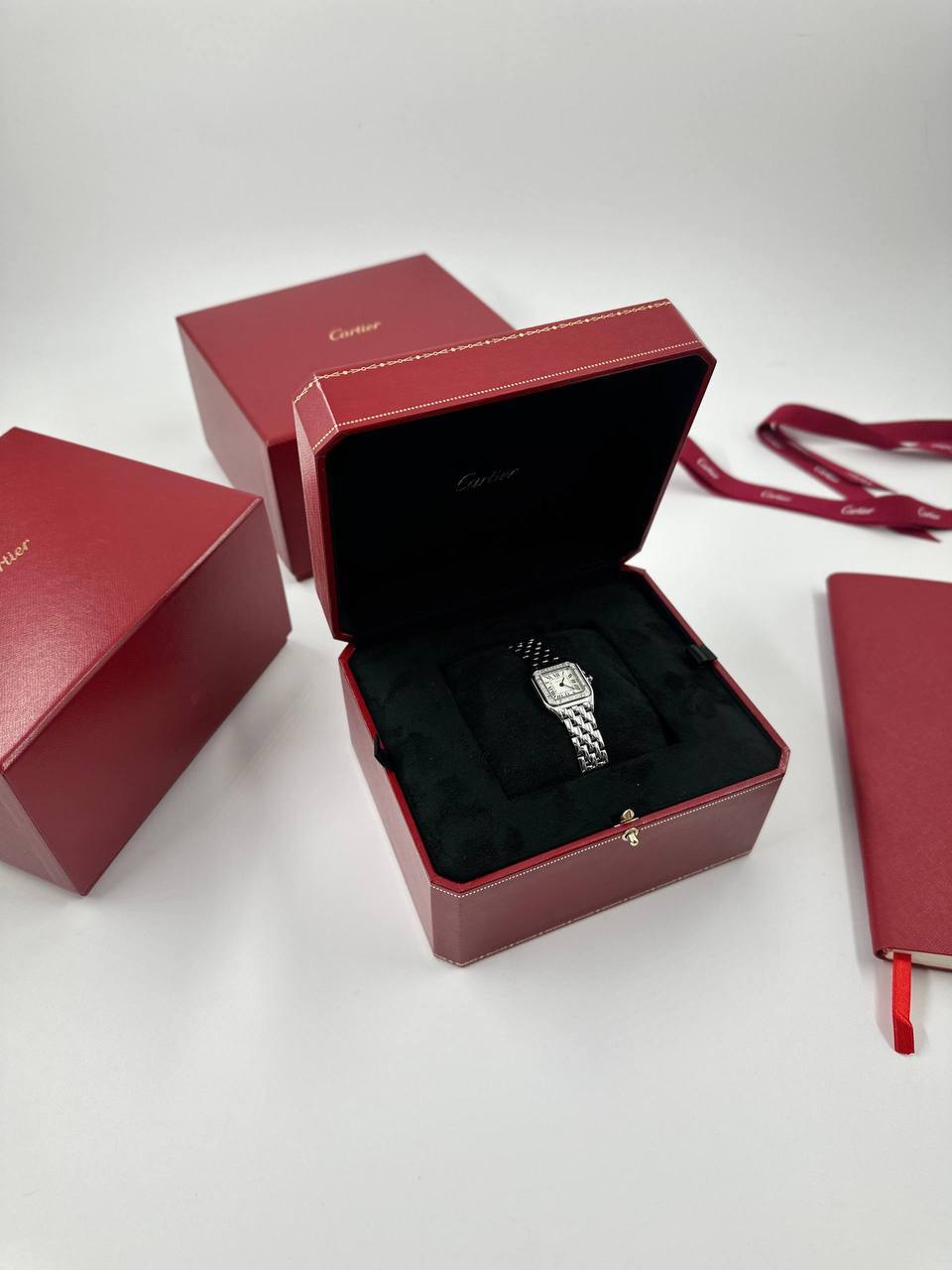 Внутри надёжный кварцевый механизм Cartier, идеально подходит для повседневного ритма и не требует внимания, как например механические часы, которым нужно регулярное тех. обслуживание.