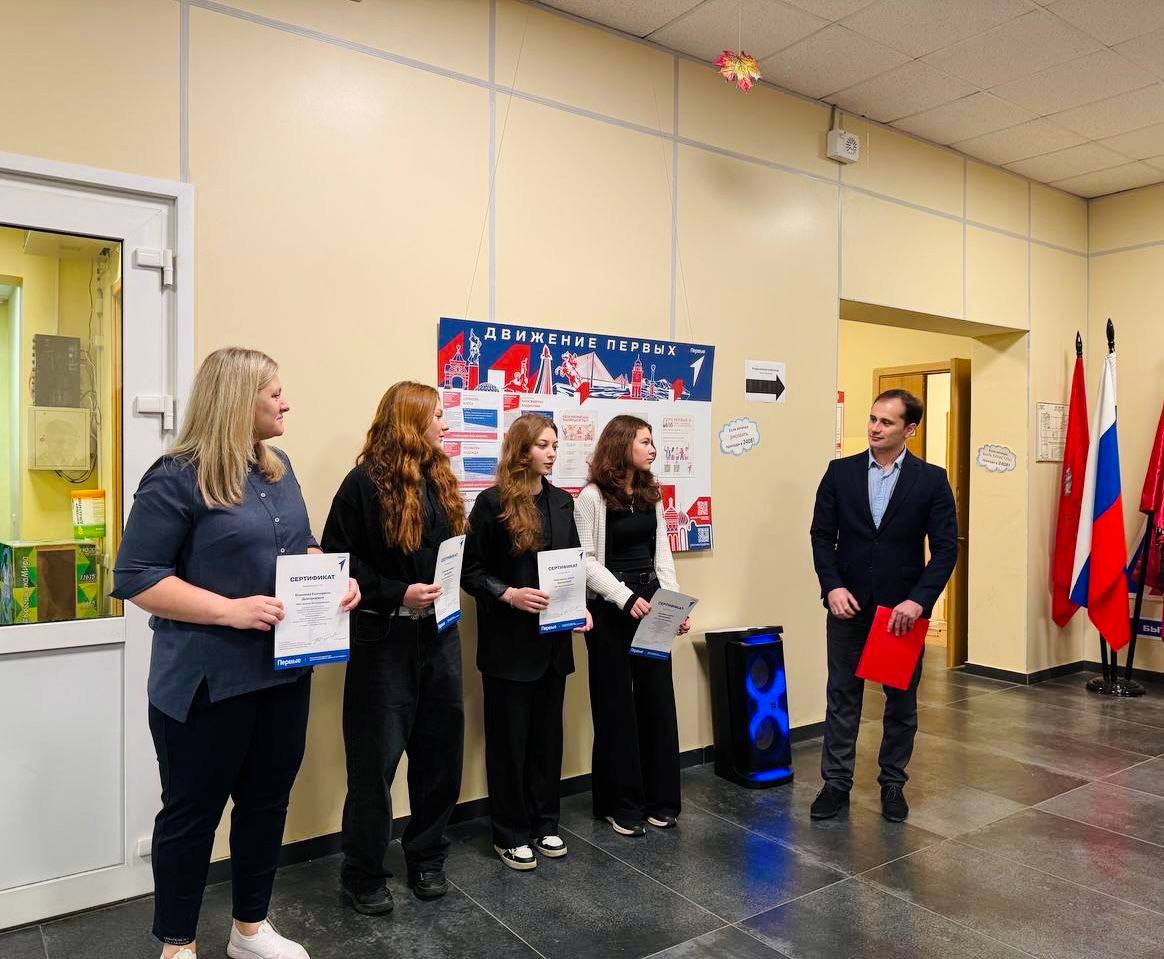 — Элина, ученица 9Б, Надежда, ученица 9Д, Алиса, ученица 9Е (УК-2) — участники образовательной программы САО "Движения Первых" города Москвы!