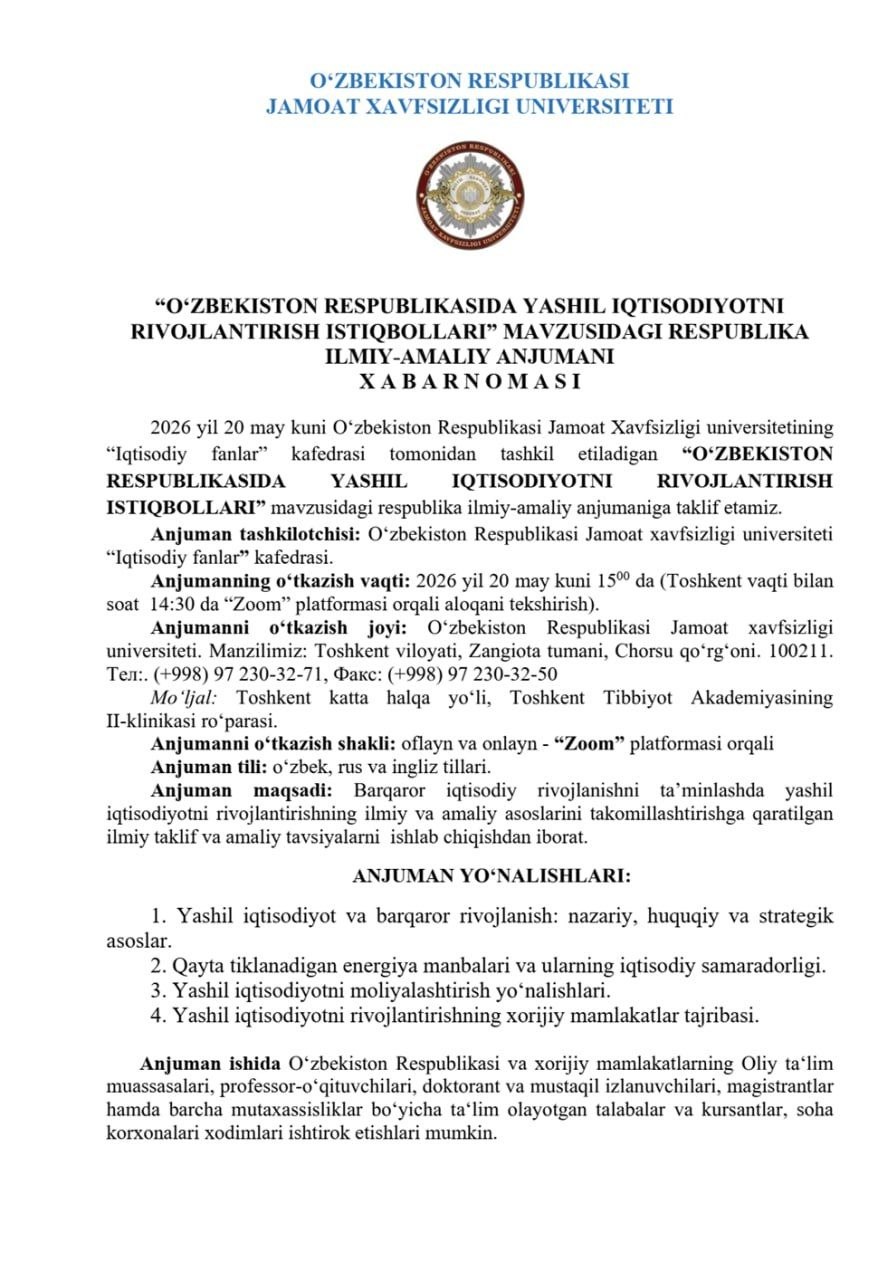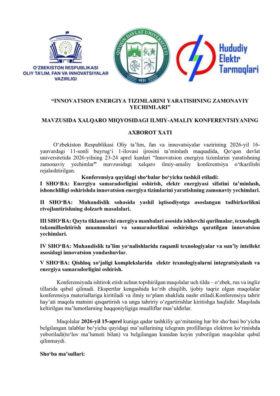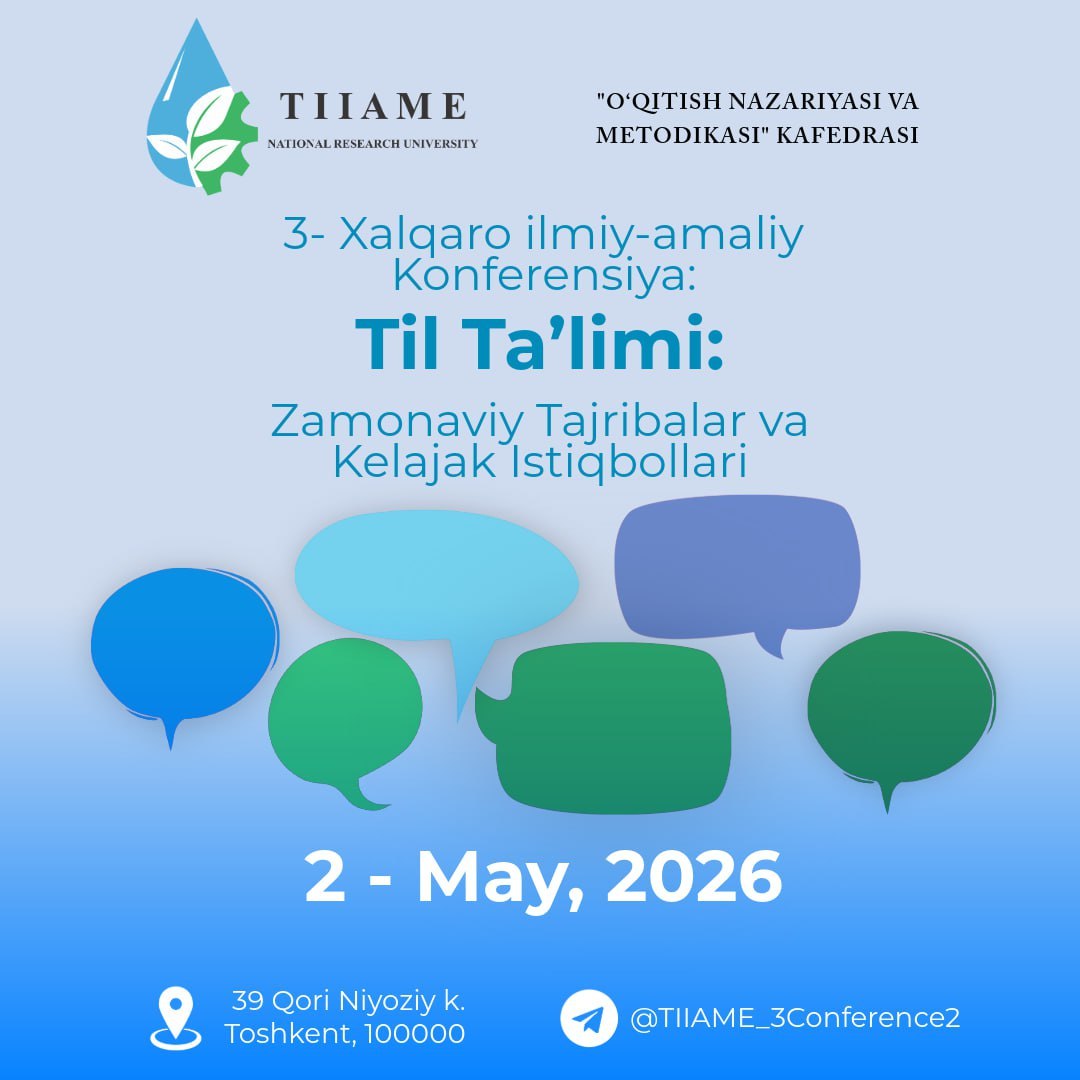 “Til ta’limi: Zamonaviy tajriba va kelajak istiqbollari” 3-Xalqaro ilmiy-amaliy konferensiyasiga taklif etamiz.