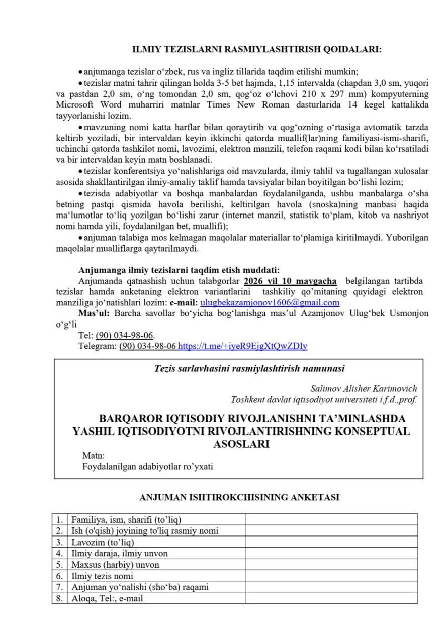 ⏳Tezis topshirish muddati: 25-aprel, 2026
