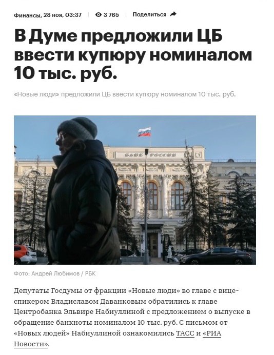 Может вместо предложения о выпуске в обращение банкноты номиналом 10 тыс. рублей депутаты посмотрели на реальные доходы граждан в России – те же заработные платы в бюджетных организациях. 🤔