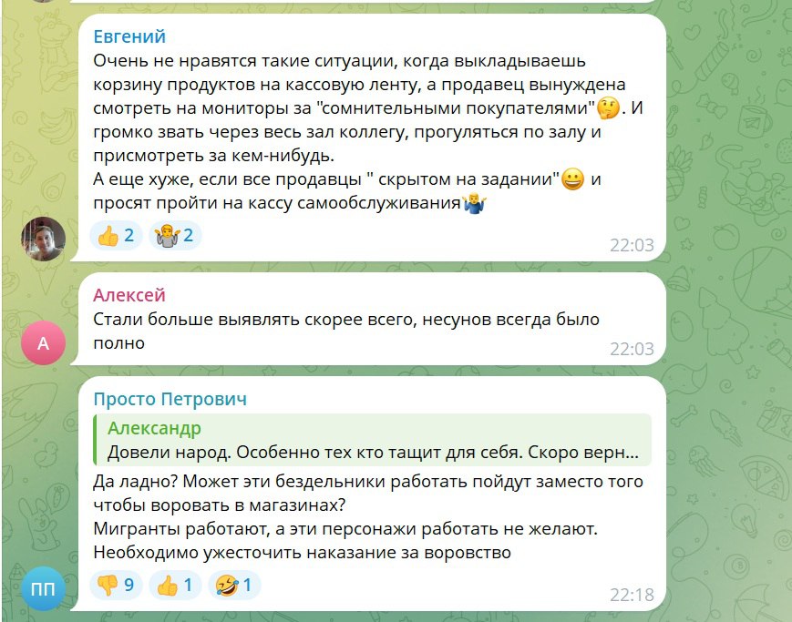 «Пятерочку» за год обворовывали 88 раз, «Магнит» – 30, «Монетку» – 22. Озабоченность правоохранительных органов вызывает наплевательское отношение руководителей сетевых магазинов. Заместитель начальника полиции МО МВД России «Тюменский» Александр Журов говорит, что представления по устранению причин и условий, способствующих совершению преступлений, руководством магазинов игнорируются.