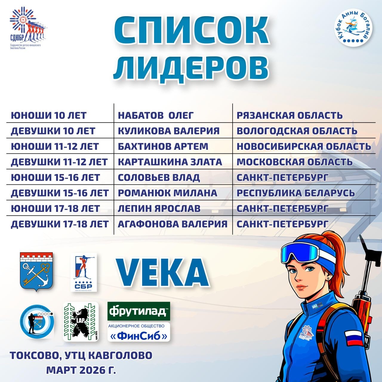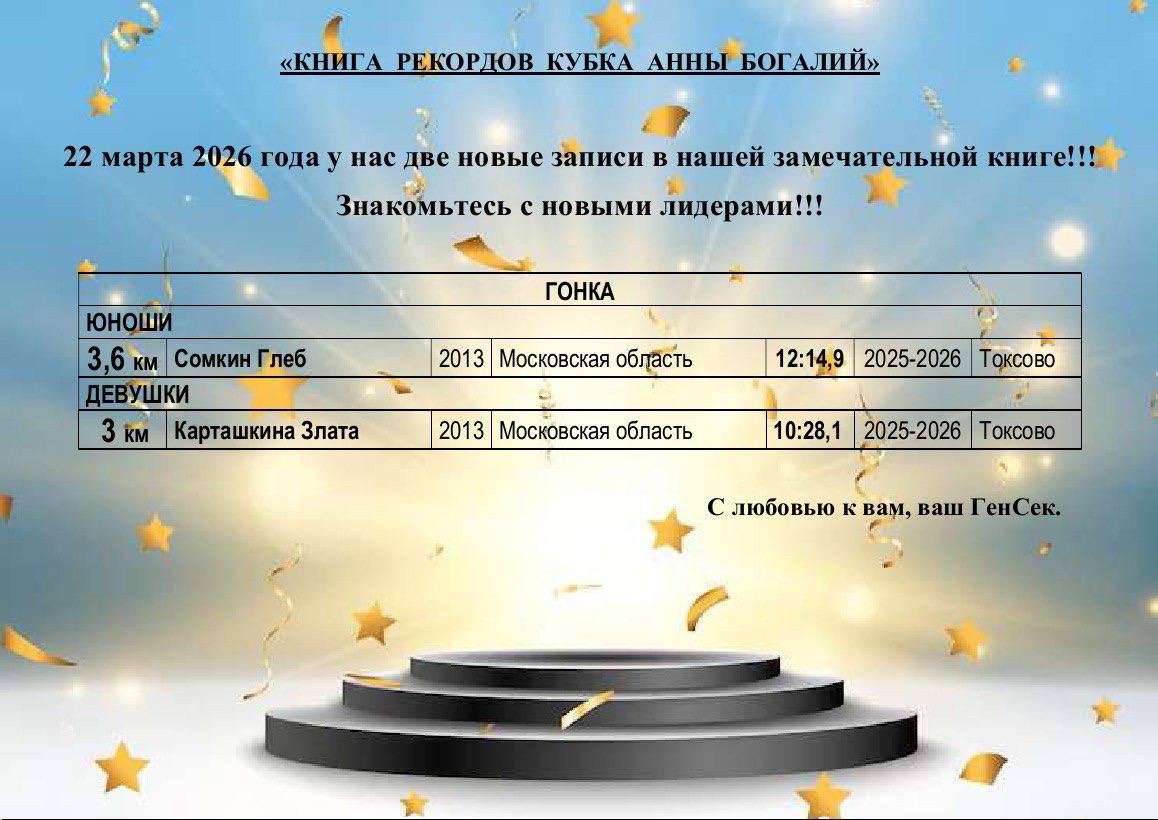 Завтра на официальной церемонии закрытия "Кубка Анны Богалий" мы подведём итоги этапа и наградим лидеров в каждой возрастной категории 🏆