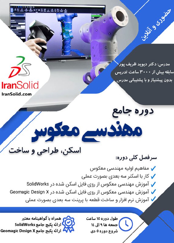 ⭕️ همراه با ارائه پکیج جامع SolidWorks و Geomagic Design X به دانشجویان