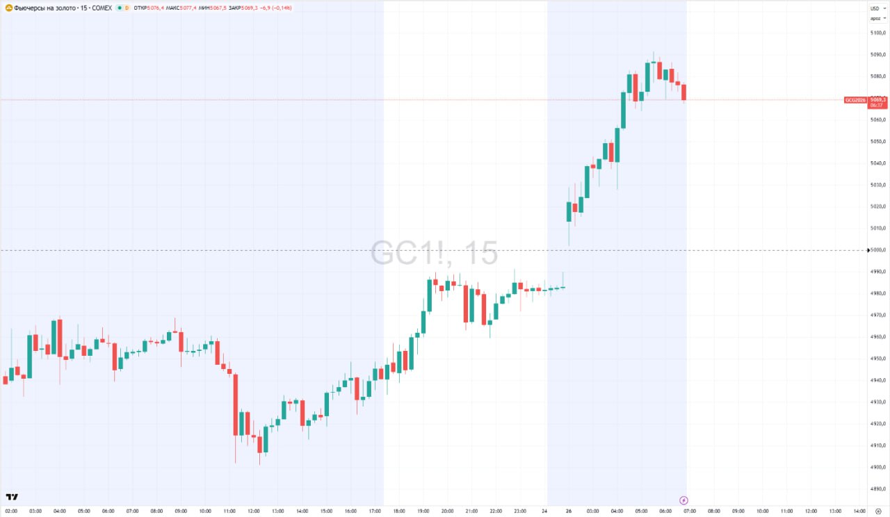 — цены на золото впервые превысили отметку $5000 за унцию, на пике достигнув $5091,5