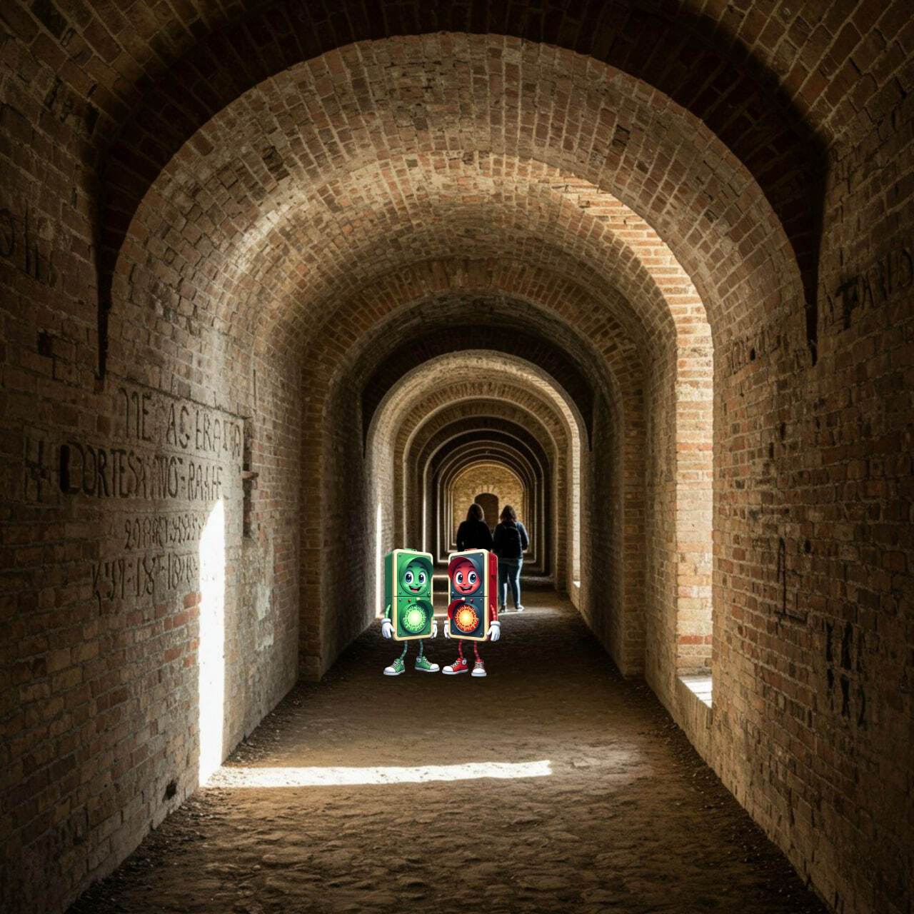 — «Говорят, что эти тоннели соединяют крепость с другой стороной Дуная», — Зелёный провёл рукой по шершавой кирпичной стене.