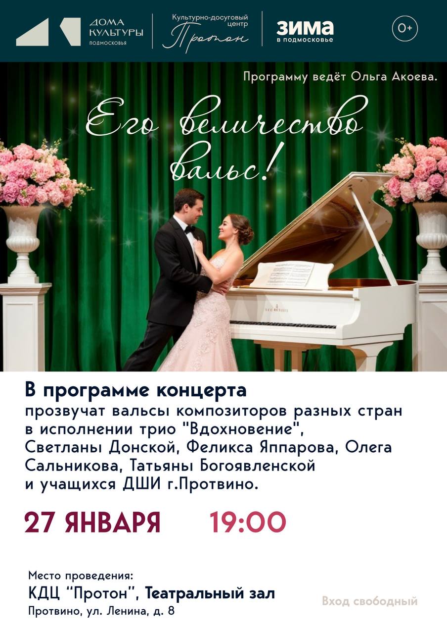 🎶В программе концерта прозвучат вальсы композиторов разных стран в исполнении трио "Вдохновение", Светланы Донской, Феликса Яппарова, Олега Сальникова, Татьяны Богоявленской и учащихся ДШИ г. Протвино.