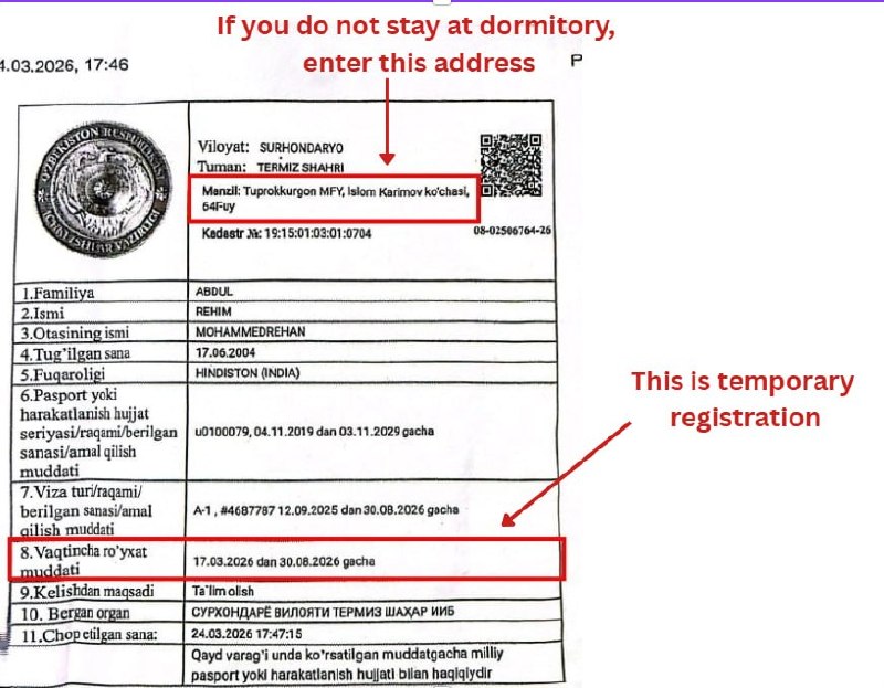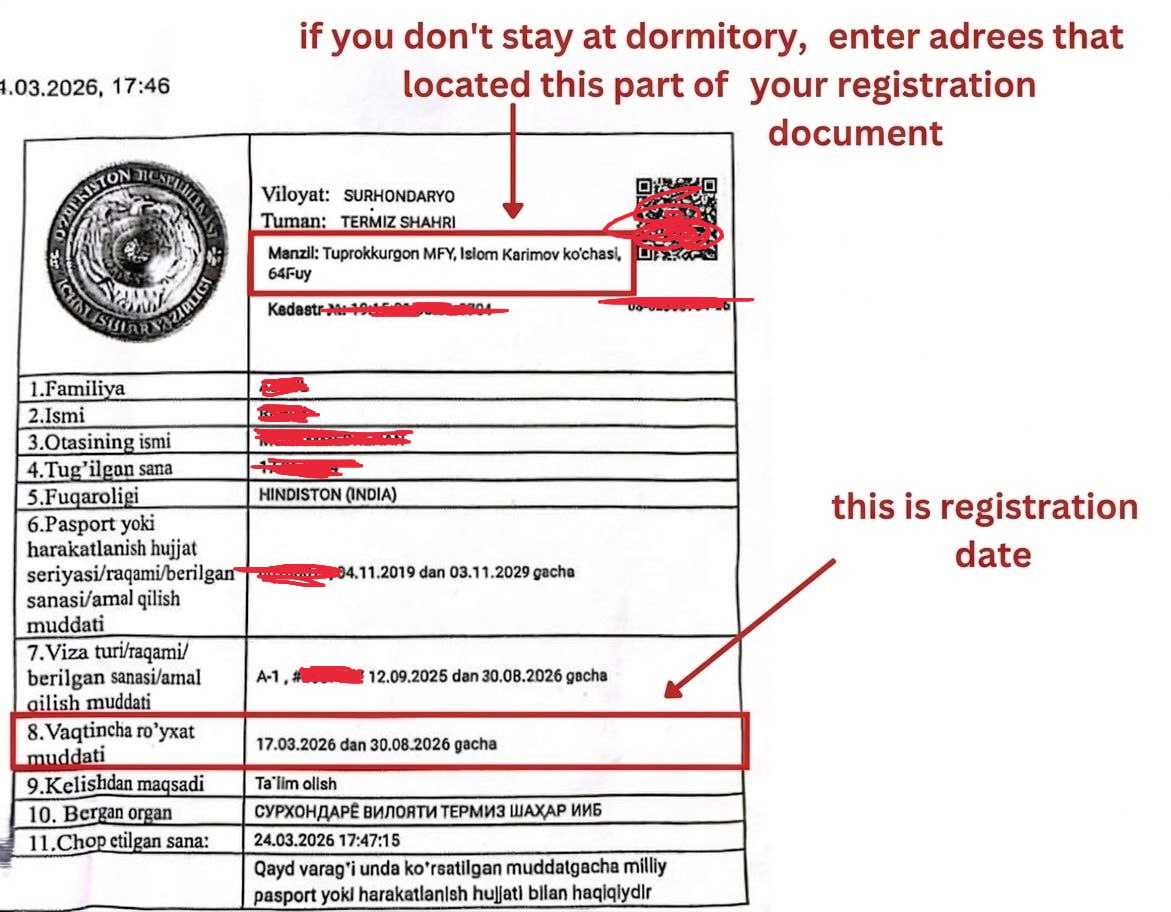 📄 Required Documents: Passport main page, Visa page, Registration page